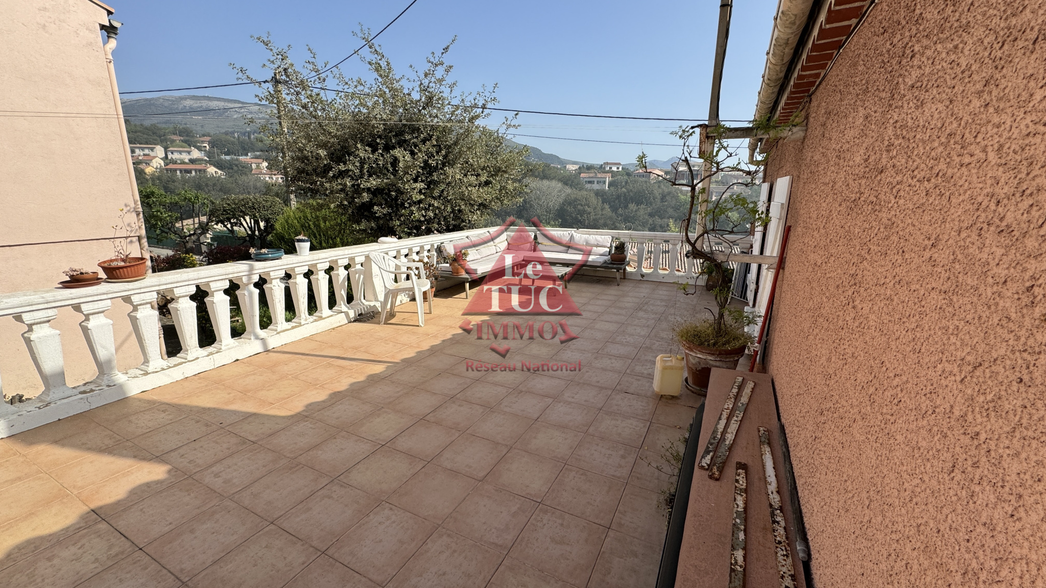 DIRECT PENETRANTE A LOUER MEUBLÉ: un appartement de 81 m2 environ à l'étage dans une villa comprenant: entrée, séjour, cuisine séparée aménagée avec terrasse, deux chambres, salle de bains toilettes, une véranda.