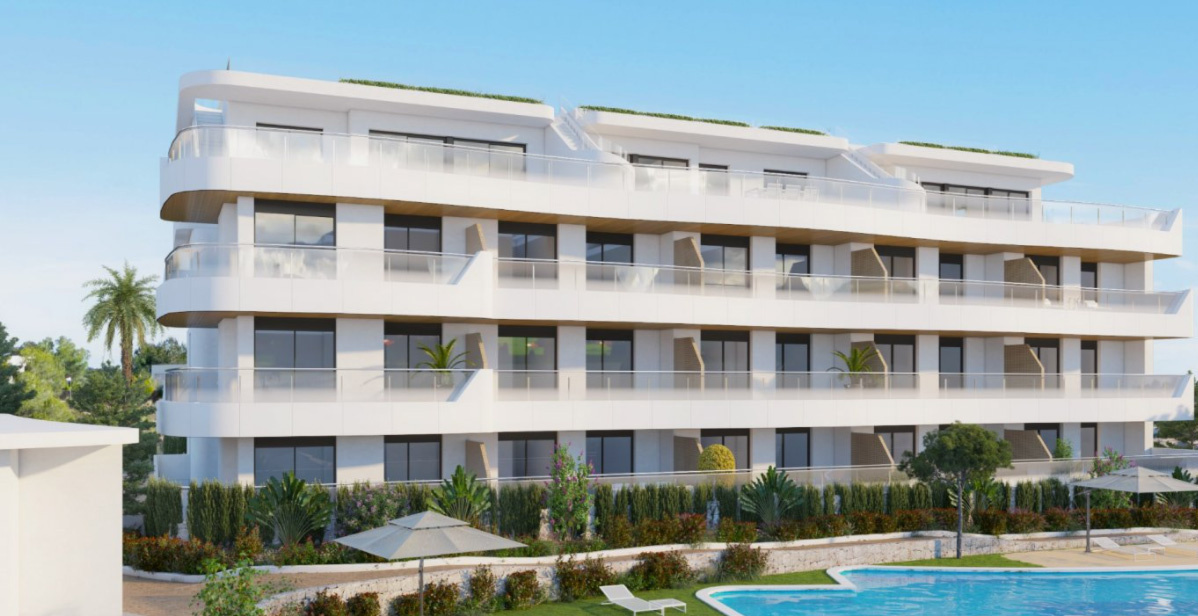 The apartment of 78 m2 with big terrace of 33,85 m2 is situated in an exciting new gated complex under construction. It comprises five four-storey blocks with a communal green area including swimming pools (one heated), jacuzzi, social club, games area, gym, and sauna. The complex is situated in Playa Flamenca, at a short walk of full amenities and only 500 meters from the seafront with its lovely promenade, and several natural beaches. Within a 15-minute drive, you have several golf courses. Alicante-Elche International Airport can be reached in 40 minutes.