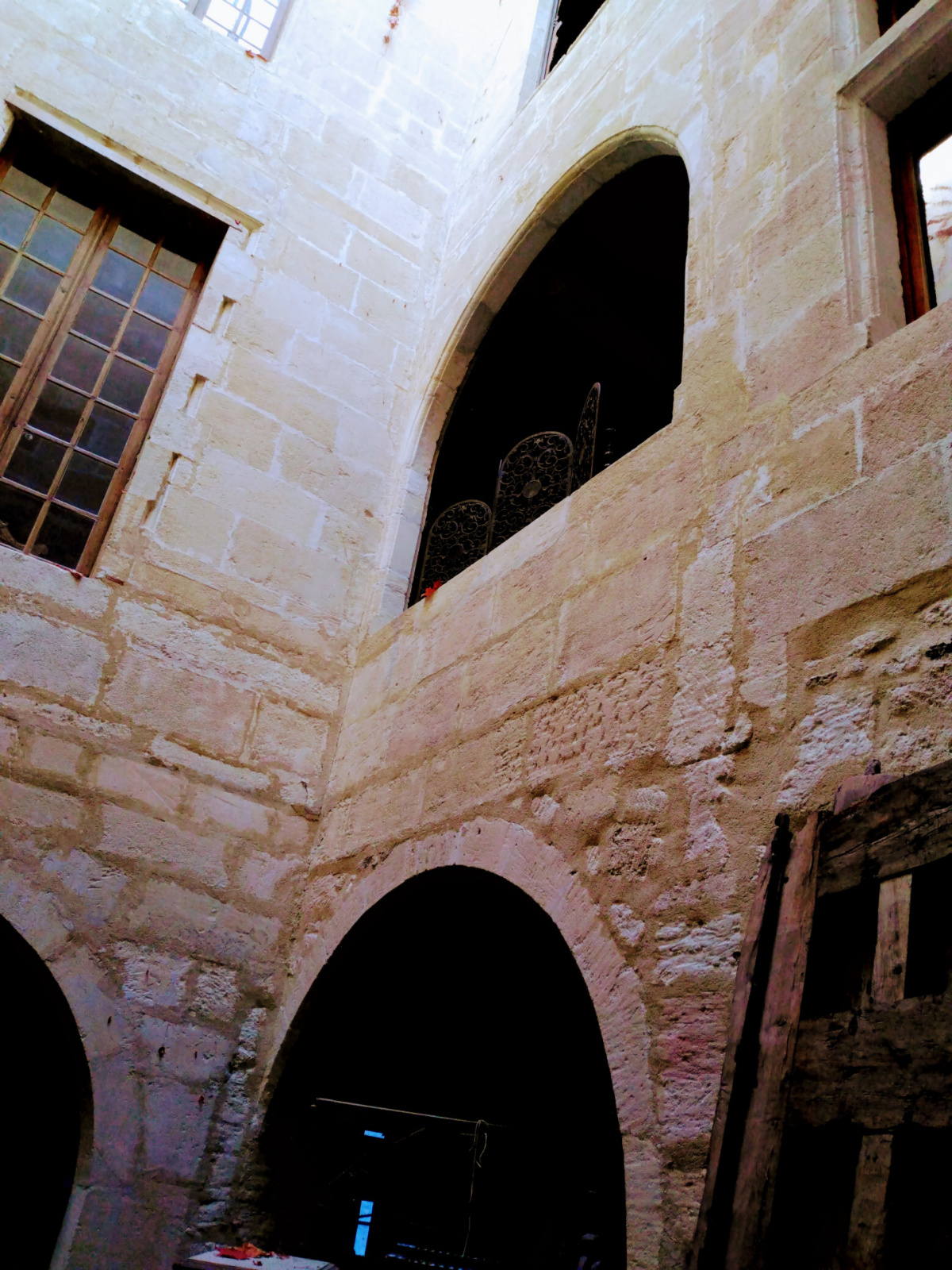Magistrale ENTREE avec plafond et puits de lumière à 15 m de hauteur , coursive avec balustres en pierres d' époque , les origines du bâtiment remontent au XVI ème siècle .