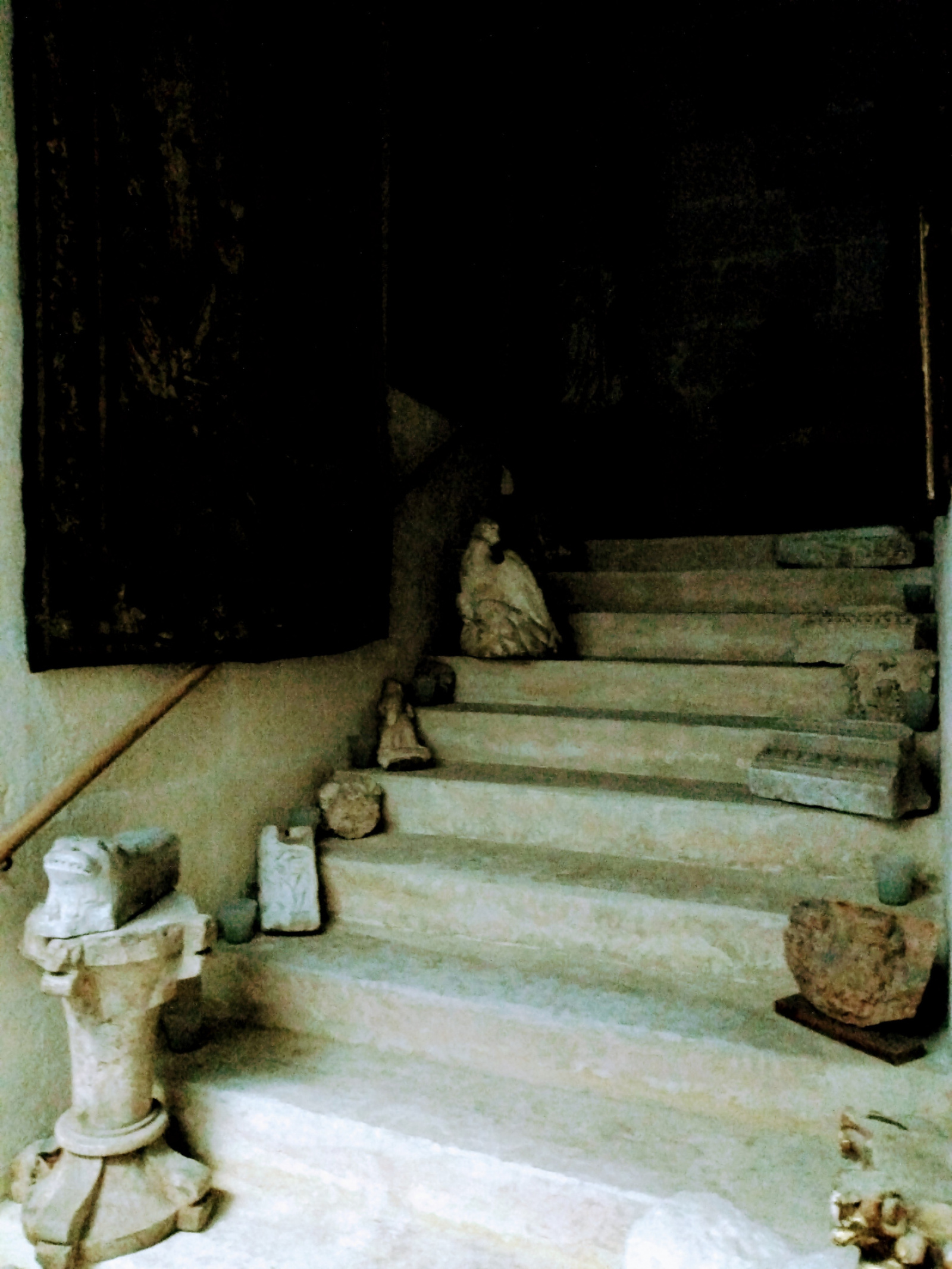 Eléments anciens d' époque , pierres , terres cuites , cheminées , magnifiques plafonds peints à la Française , très biens conservés .