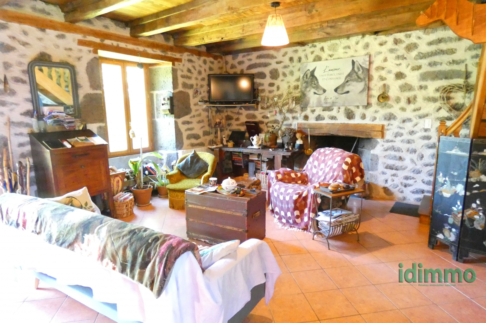 Sur 800 M2 de terrain clos et arboré, belle maison (VUE DEGAGEE) en PIERRE AUVERGNATE 1842 comprenant 1 grand salon avec CANTOU et Poele granulés, 1 cuisine équipée, 2 chambres (3 possible), 1 salle d'eau wc, 1 grenier, 1 cave, double vitrage. Secteur calme et réidentiel. Georisques: Les informations sur les risques auxquels ce bien est exposé sont disponibles sur le site www.georisques.gouv.fr