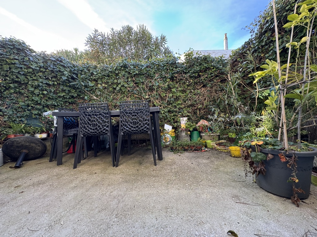 Petit jardinet à l'arrière et possibilité de stationner quelques véhicules dans l'enceinte de la propriété à l'avant.