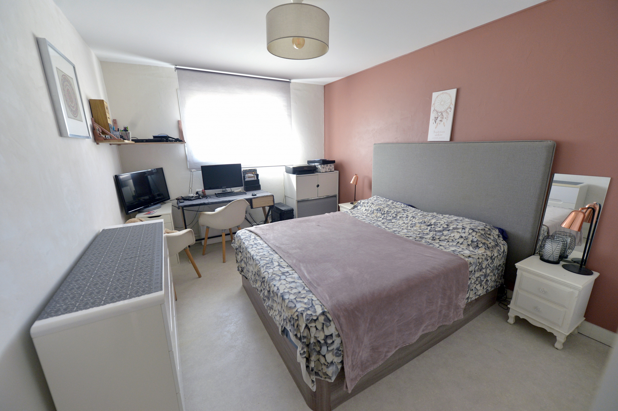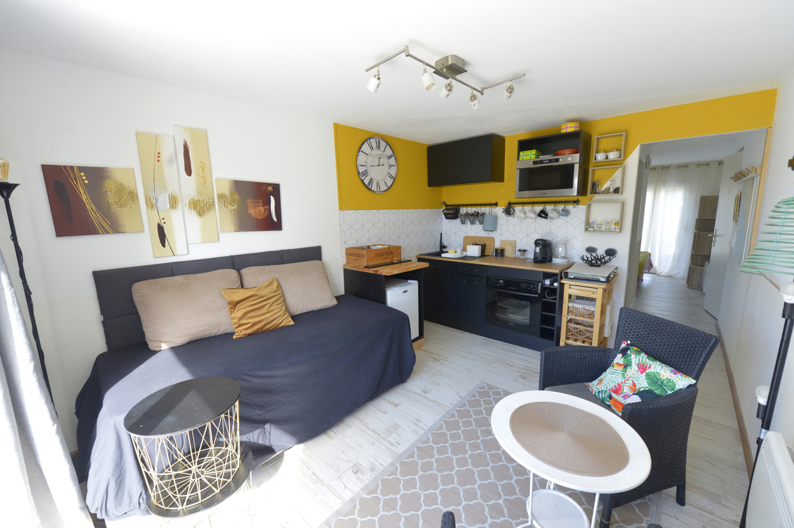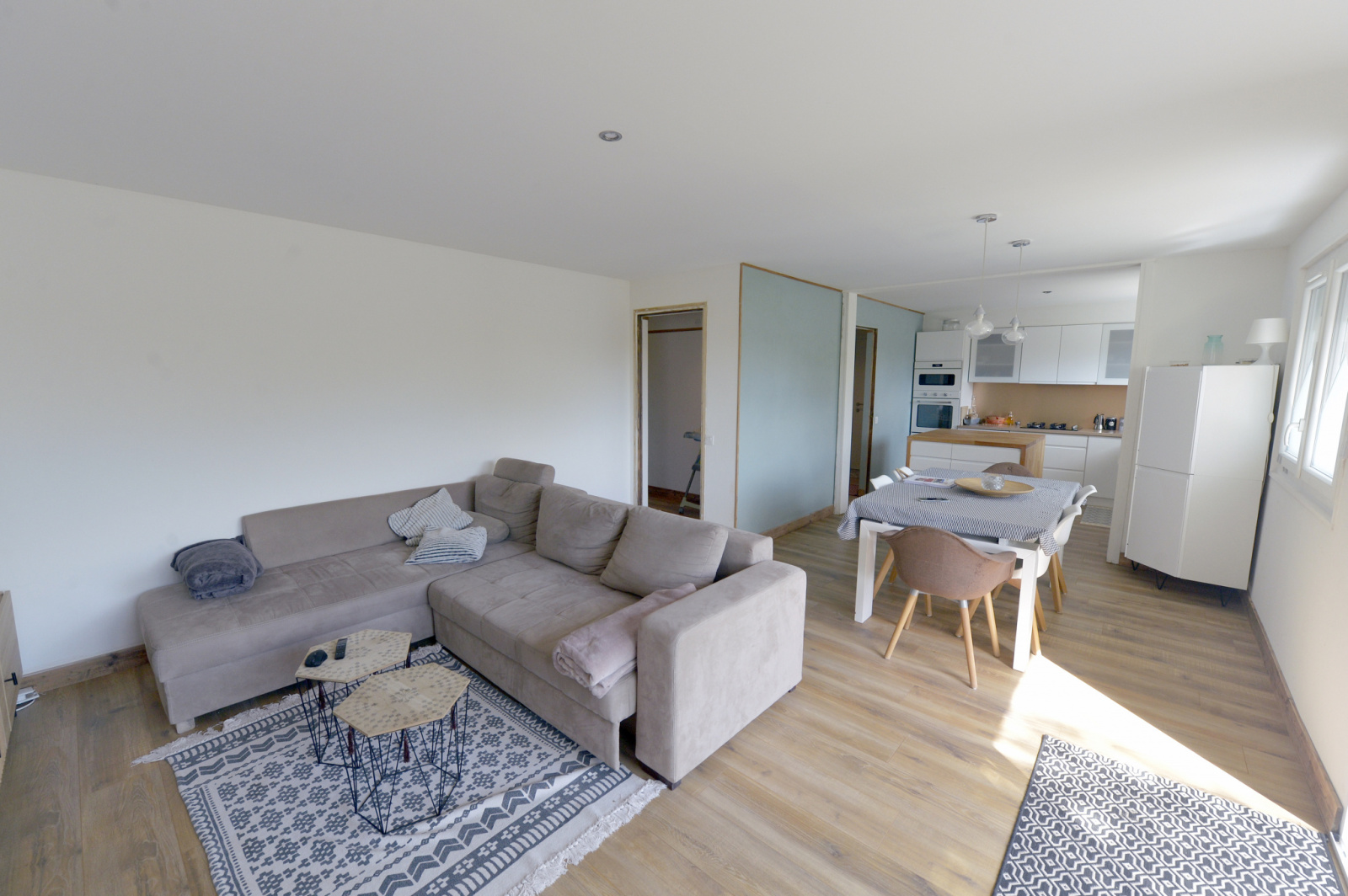La propriété est divisée en deux logements d'environ 100 mètres carrés chacun. Le premier logement comprend une entrée menant à une vaste pièce de vie lumineuse, dotée d'une cuisine équipée avec un îlot central, ouvrant par une grande baie vitrée sur une terrasse et le jardin. Il comprend également une chambre, des toilettes, une spacieuse salle d'eau avec une douche à l'italienne, une seconde chambre, ainsi qu'un salon avec une autre cuisine équipée et une salle de bain avec toilettes. Ce logement est attenant mais indépendant, offrant deux baies vitrées et un accès séparé au rez-de-chaussée.