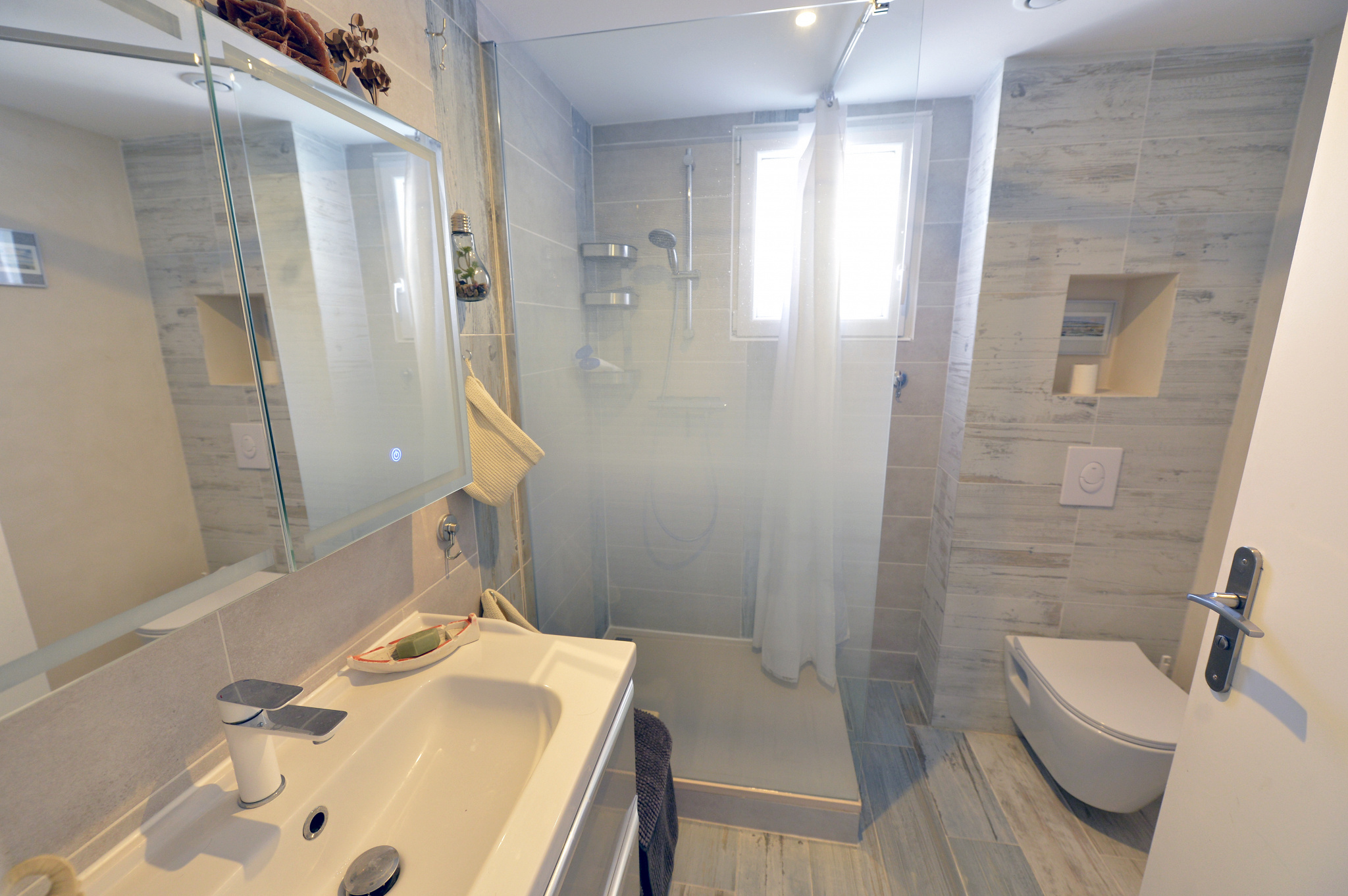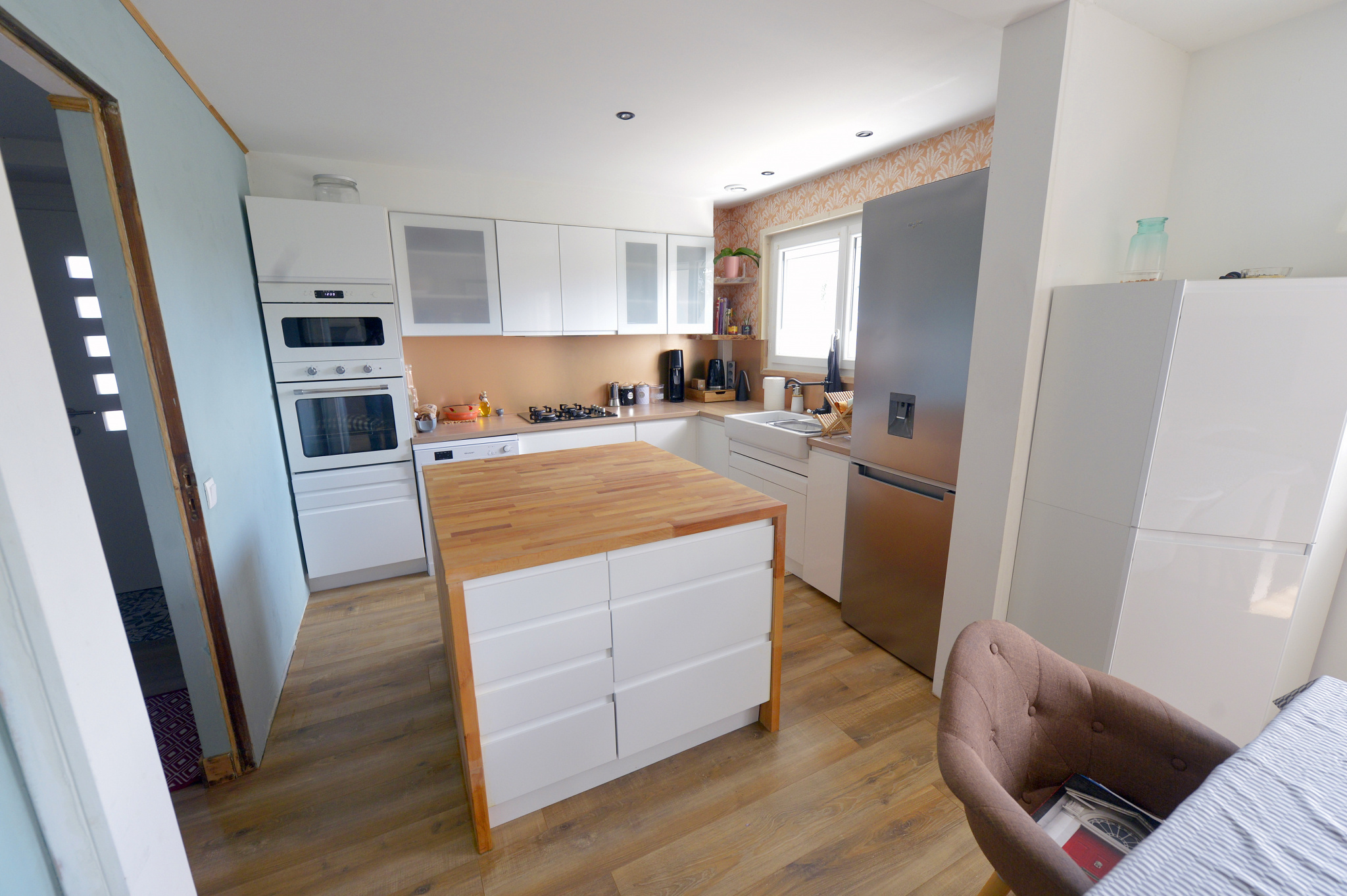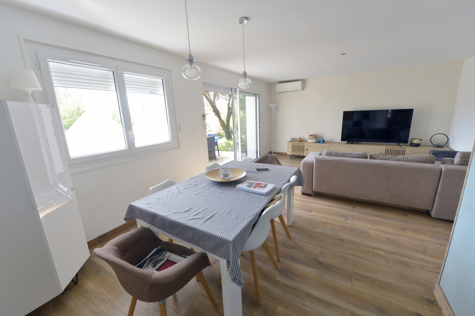 Un escalier extérieur mène au second logement, situé à l'étage, qui dispose de la même superficie que le rez-de-chaussée. Il comprend une entrée ouvrant sur un grand salon-séjour avec cuisine aménagée et équipée, donnant accès à une terrasse filante des deux côtés de la maison. À l'étage, vous trouverez trois grandes chambres, une salle de bain indépendante équipée d'une douche à l'italienne et des toilettes séparées.