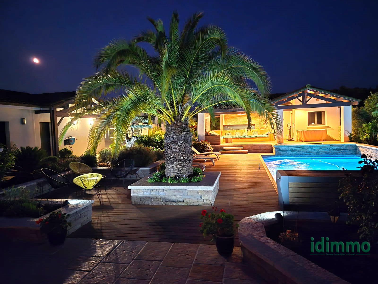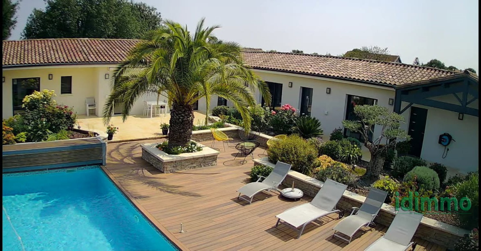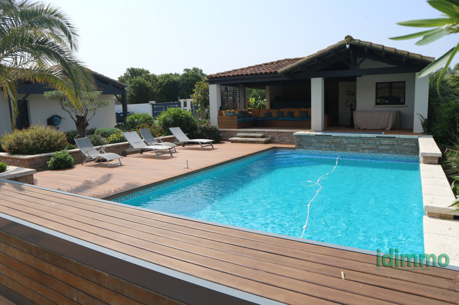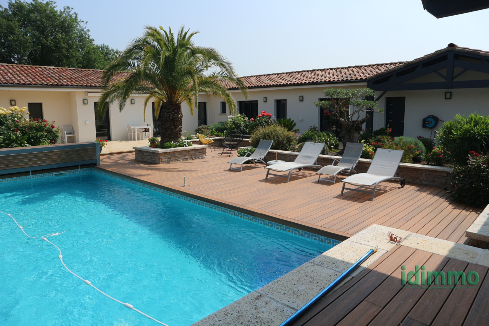 Un vaste pool house de 50 m2, totalement équipé (évier, placards, wc) avec son local technique, accompagne une belle piscine de 10 par 5 avec volet électrique, chauffage, traitement au sel et robot nettoyeur Polaris 280. Une grande plage en bois composite borde cette piscine. Enfin un local atelier de 12 m2 pour matériel jardin complète l'ensemble.