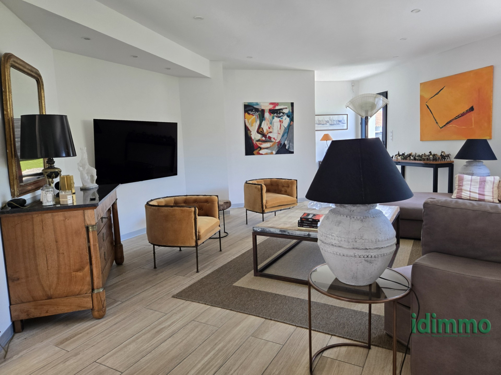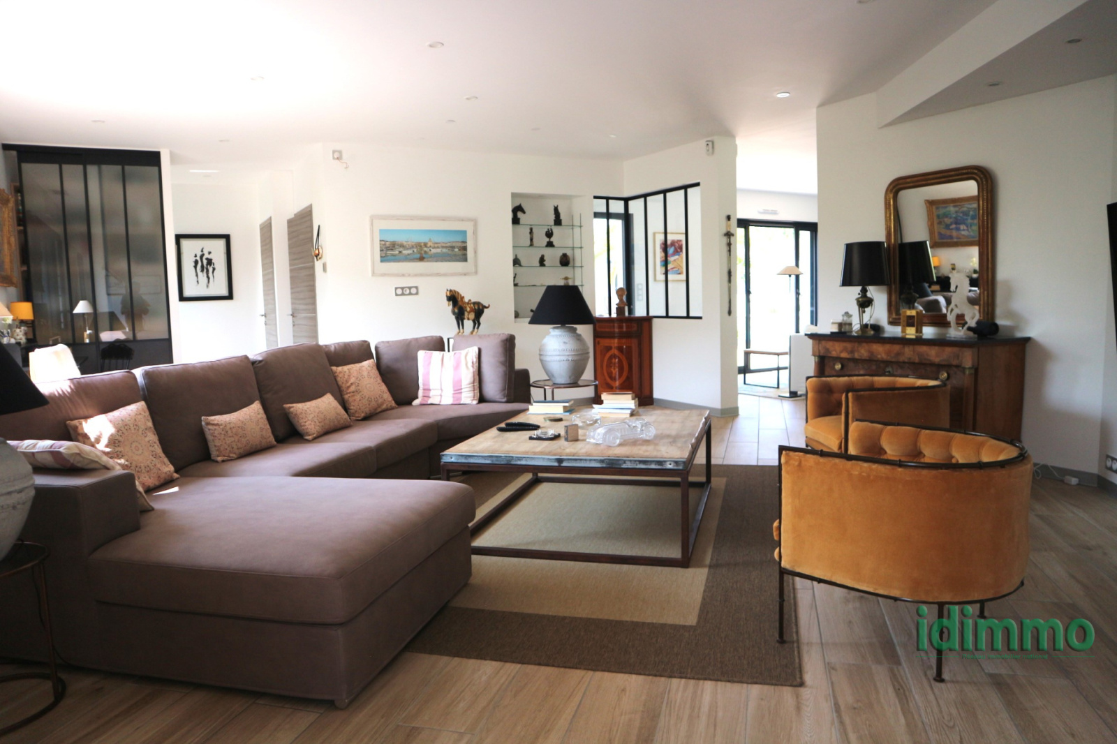 Elle comprend hall entrée, vaste séjour de 52 m2 avec cuisine aménagée et équipée, salon de 40 m2, dégagement, 5 belles chambres de 12 à 20 m2, salle de bain privative, 2 salles d'eau, 3 WC, buanderie, garage 2 voitures, atelier...