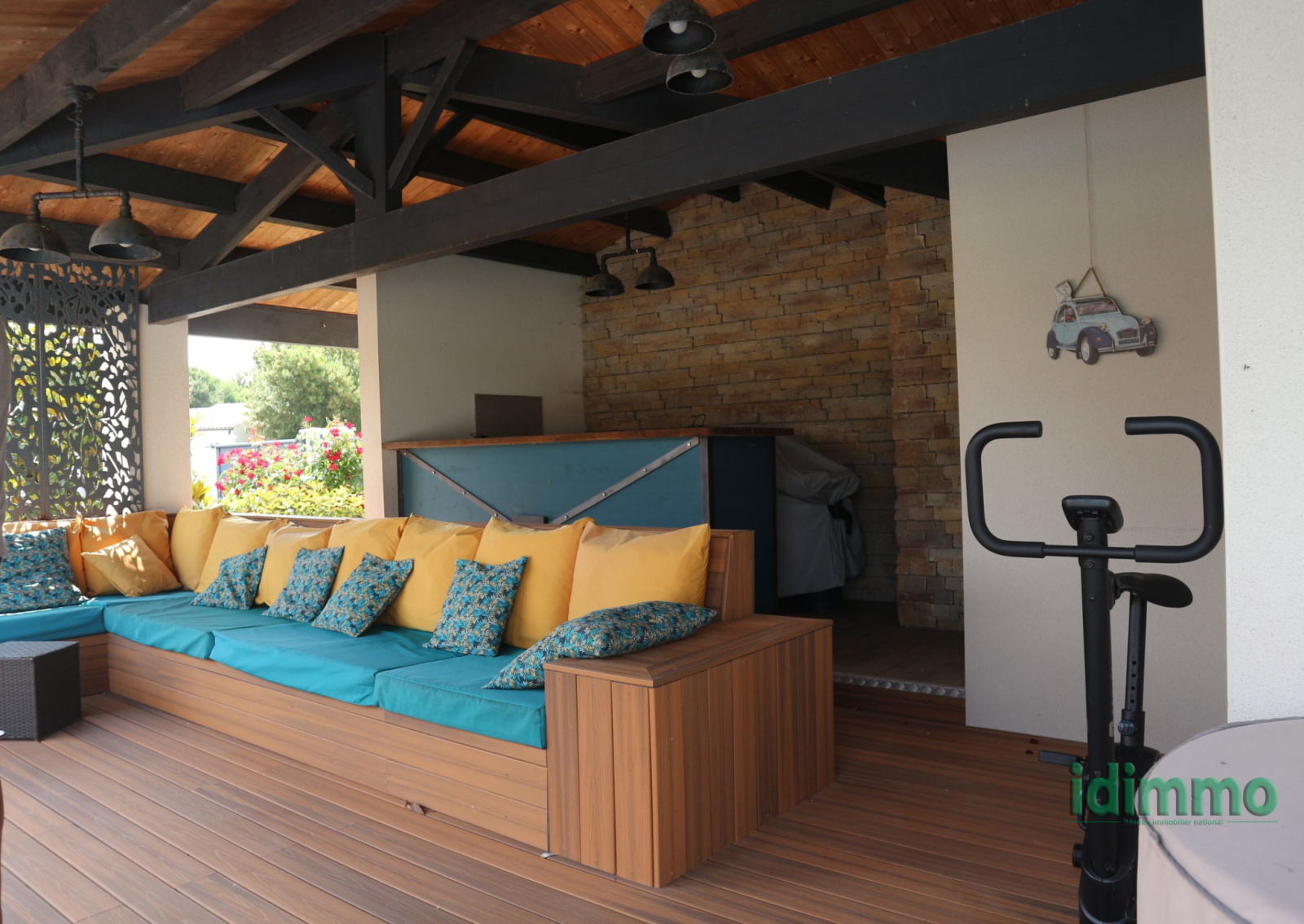 La propriété totalement aménagée en gazon synthétique bénéficie du plusieurs arbres fruitiers, fraisiers, framboisiers, mûriers et carré potager.