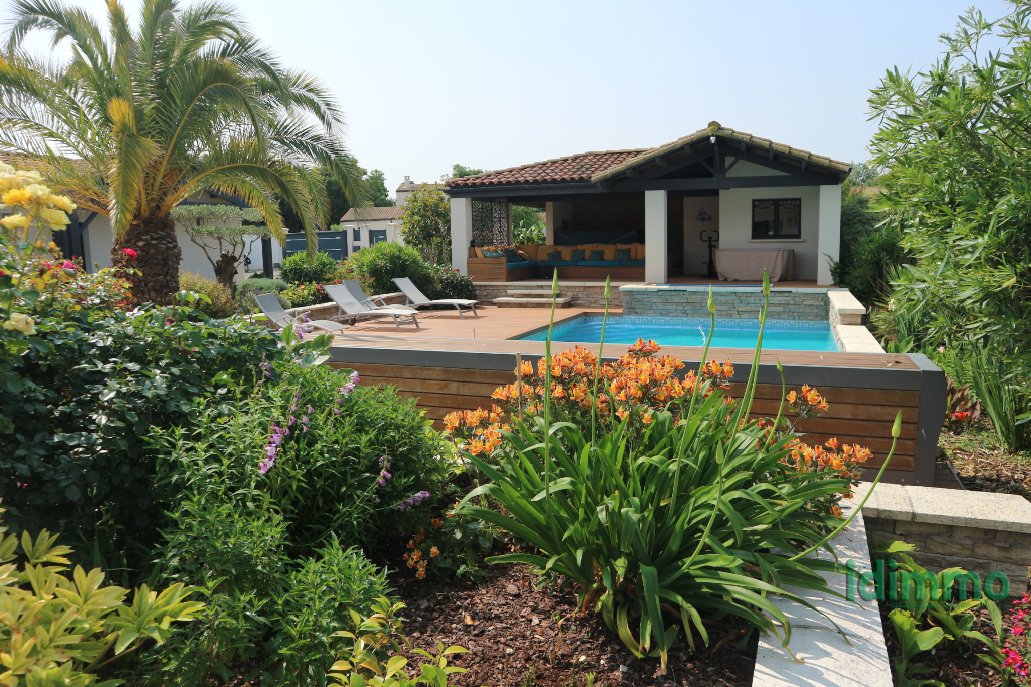A PROXIMITE DE LA ROCHELLE, DANS UN ENVIRONNEMENT CALME, SUPERBE MAISON CONTEMPORAINE RECENTE DE STYLE RETHAIS DE 240 M2 ET SES ANNEXES SUR UN TRES BEAU TERRAIN CLOS ET ARBORE DE 1638 M2.
