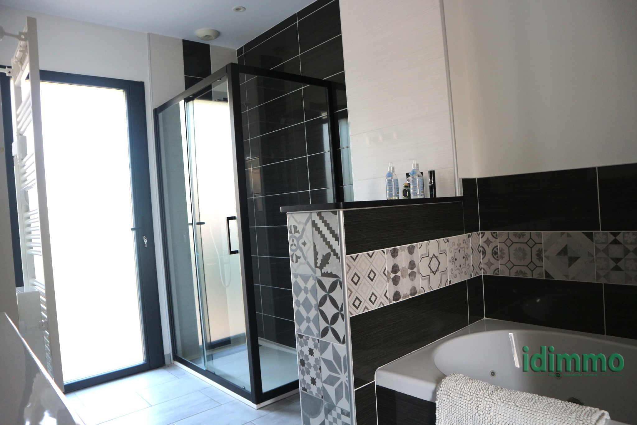 Elle est équipée de fenêtres pvc et alu double vitrage avec volets alu isolés (baie à galandage dans le séjour) donnant sur un grand jardin joliment aménagé et fleuri et une terrasse en pierre de 100m2.