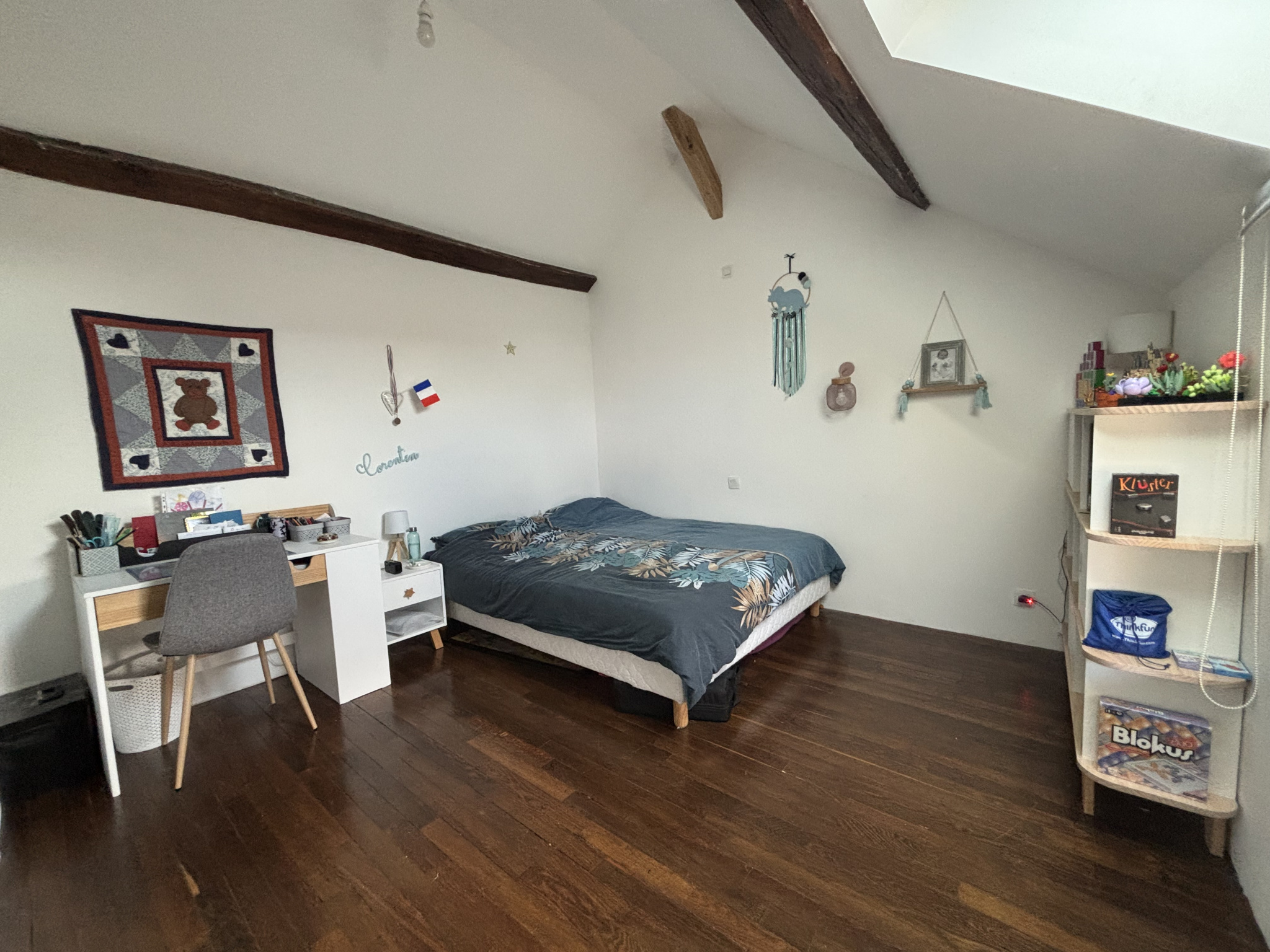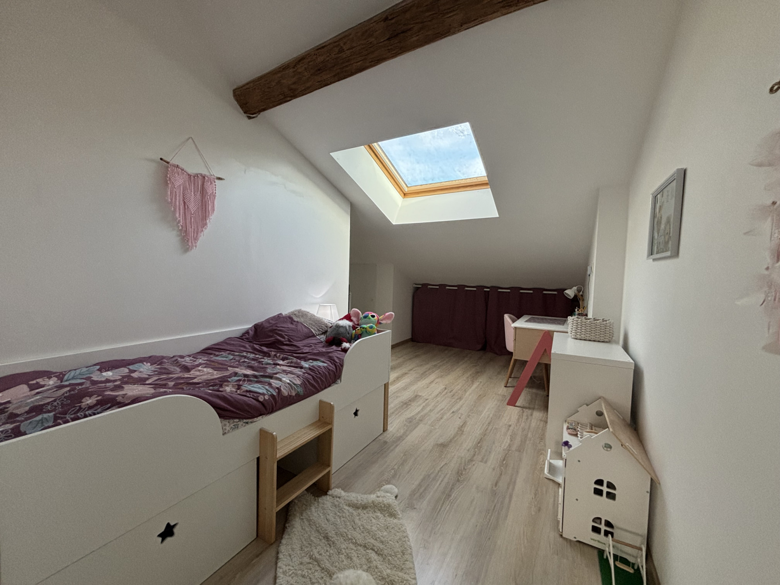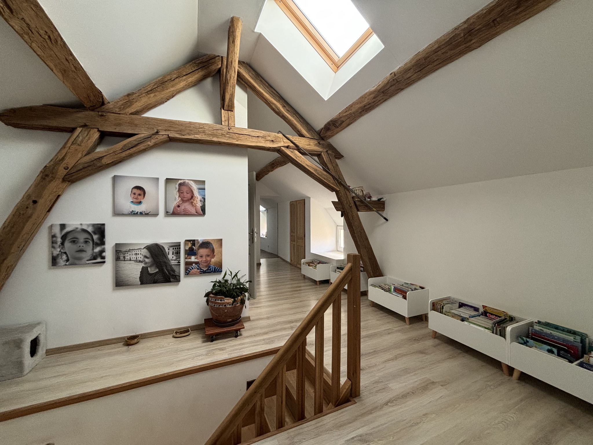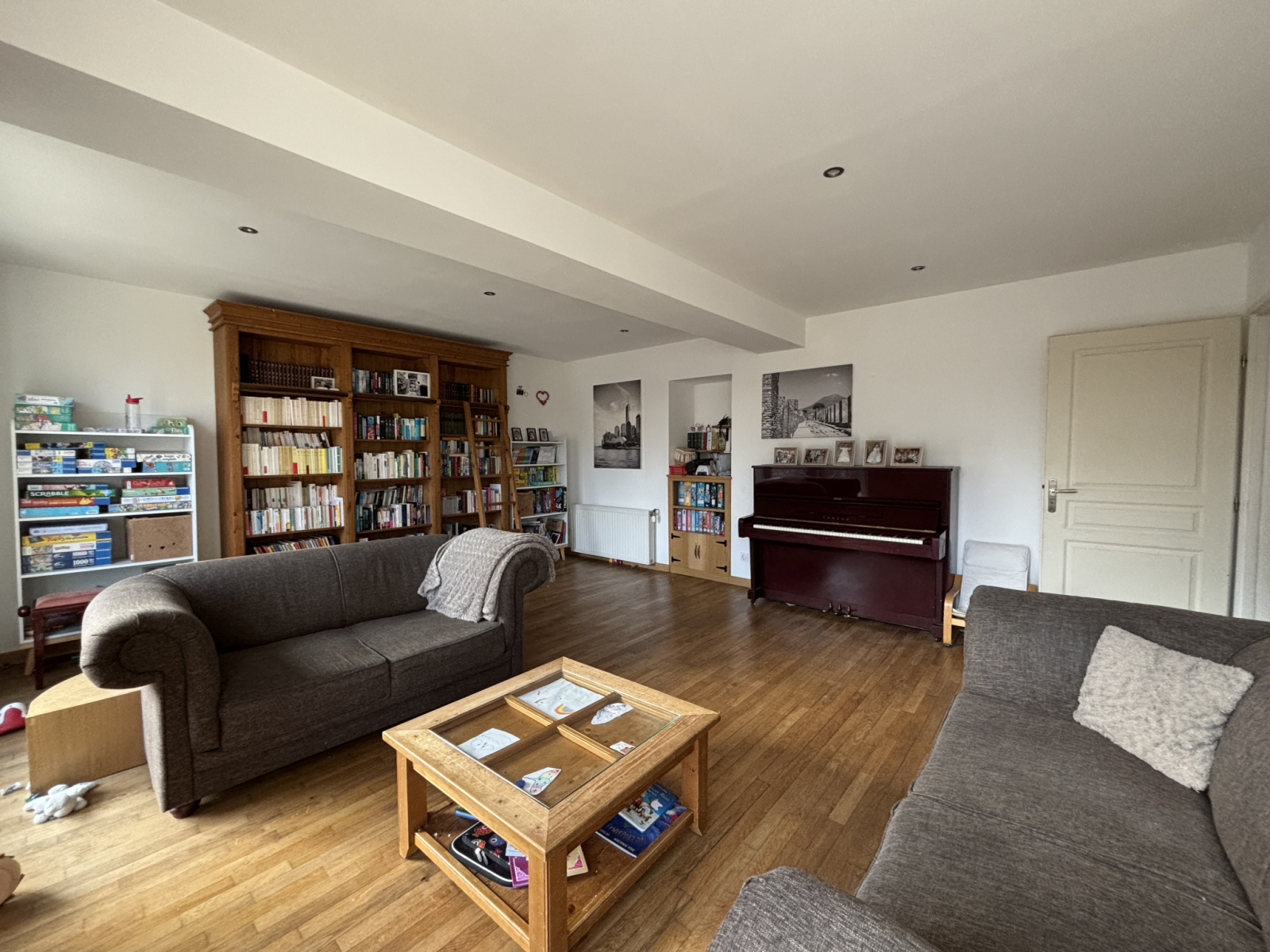 L'entrée spacieuse donne accès à une salle à manger (20,55 m²) proche de la cuisine, suivie d'une grande pièce de jeux de 19 m² ;
