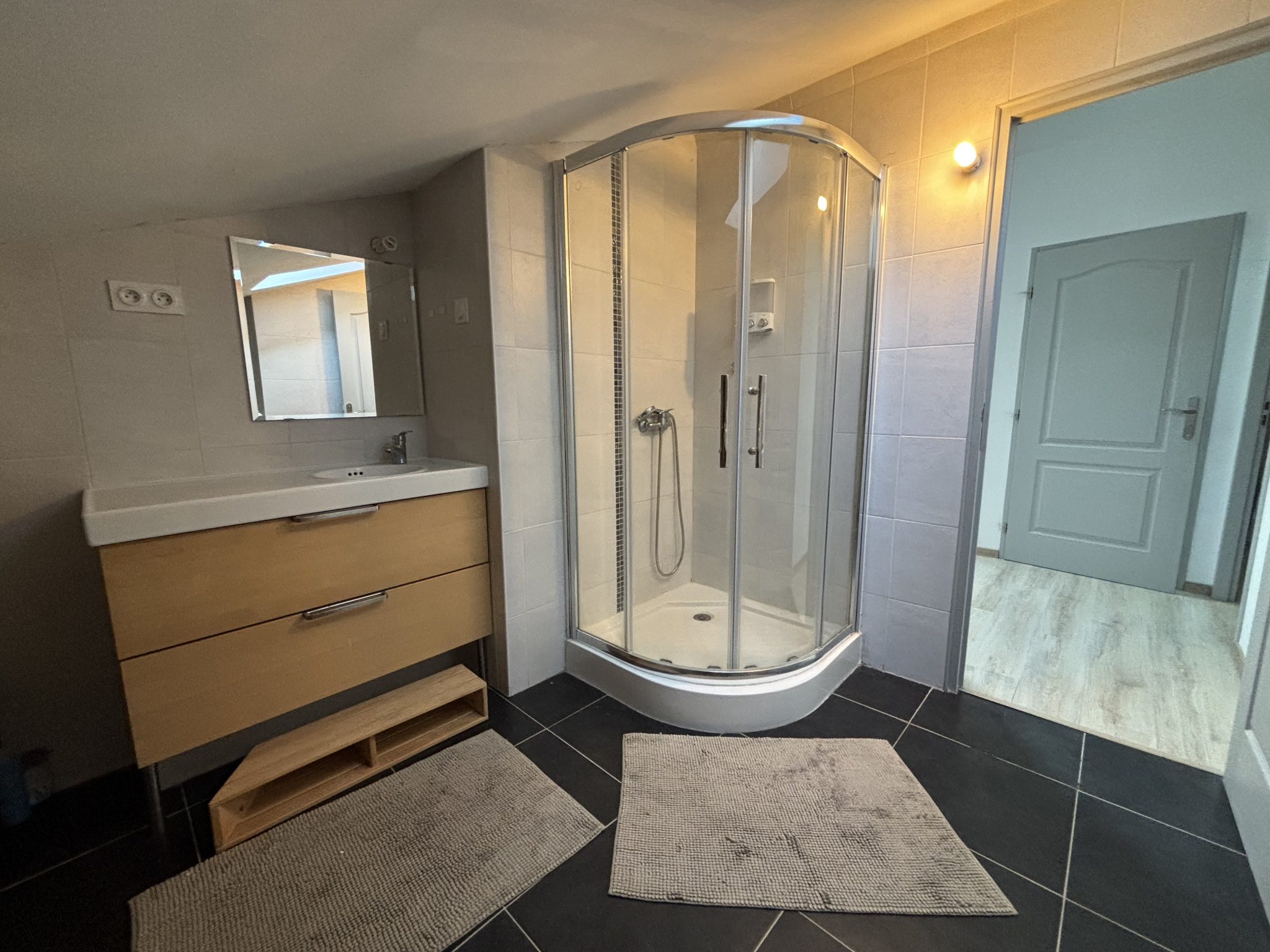 Se rajoutent au rez-de-chaussée, des toilettes, une buanderie, un dressing, une salle de bain (double lavabo et douche à l'italienne), deux chambres avec dressing de 12,37 m² et 16,43 m², donnant accès à la terrasse