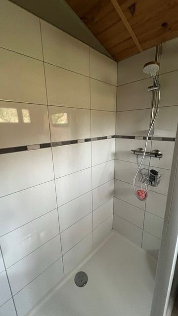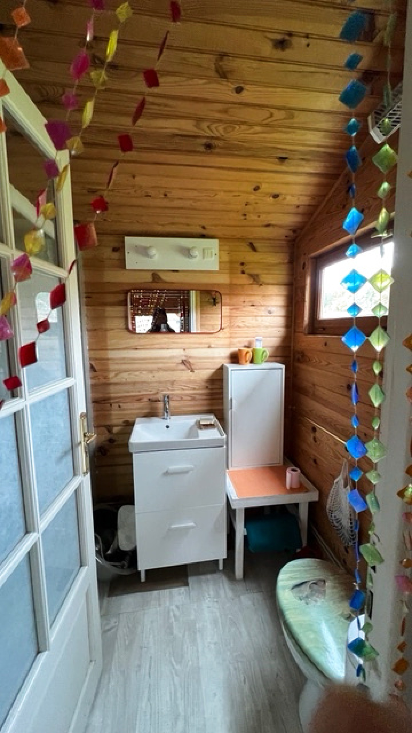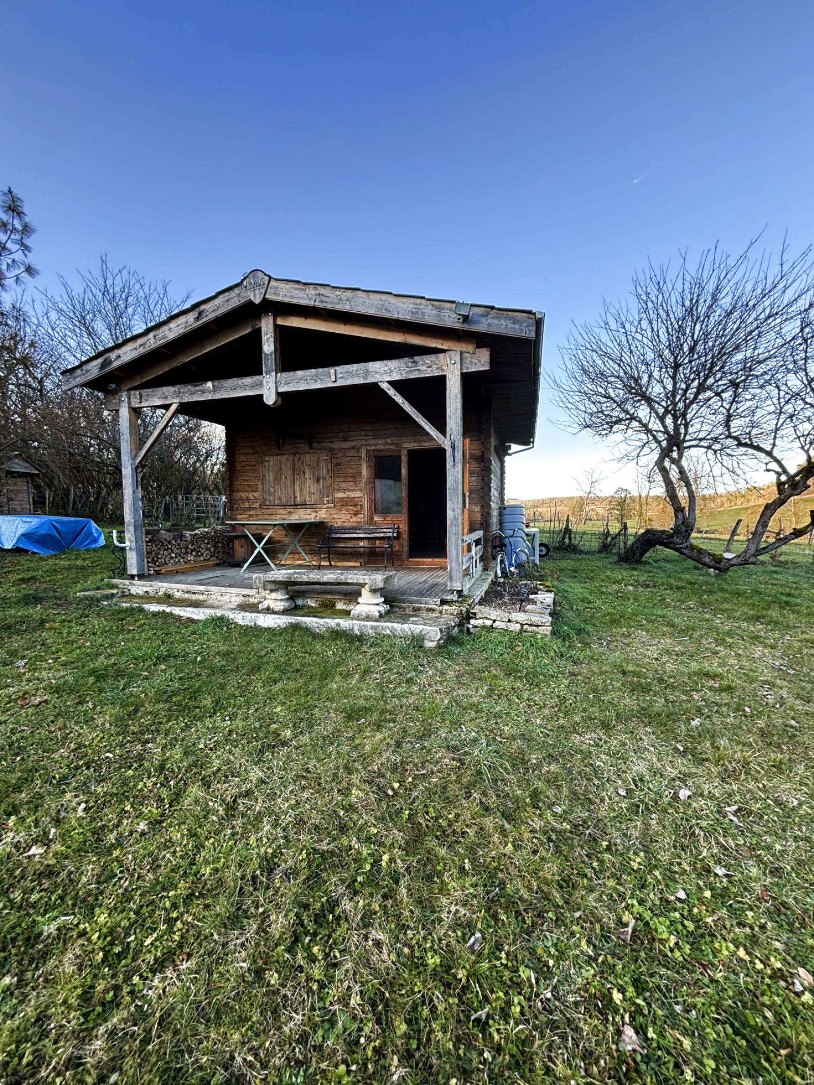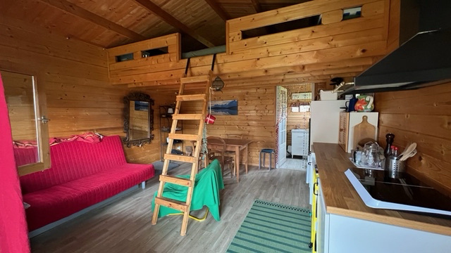Chalet de 25 m² posé sur une dalle , équipé d'une cuisine, salle de bain et toilette qui s'étend sur 550m² de terrain clot.