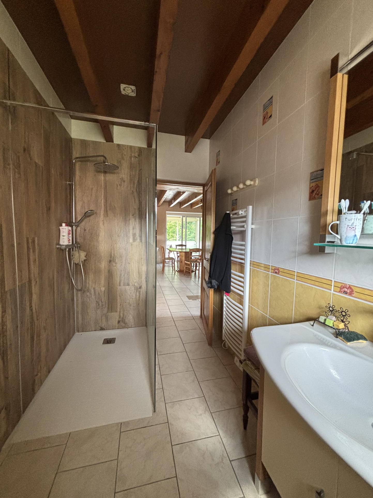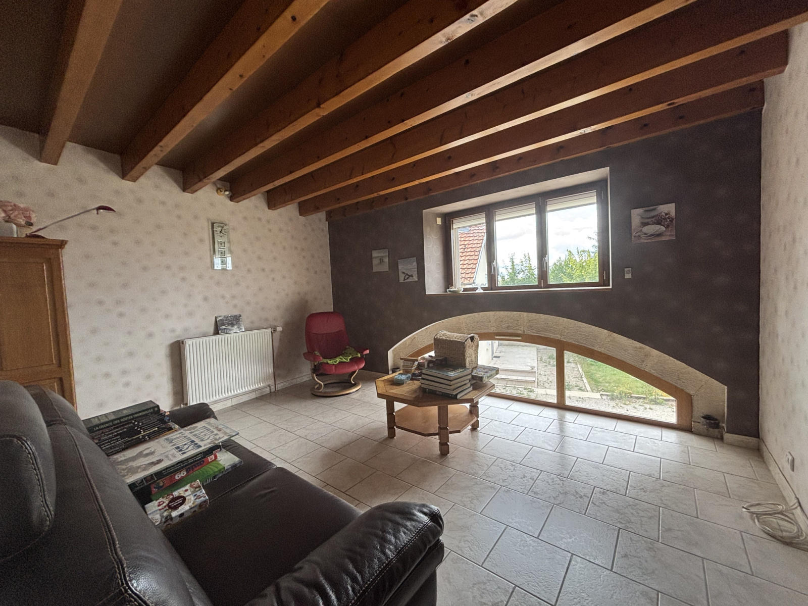 La seconde maison, actuellement louée, comprend :une cuisine ouverte de 22m² avec un insert , un salon avec cheminée de 20,48m², un espace machine à laver,;