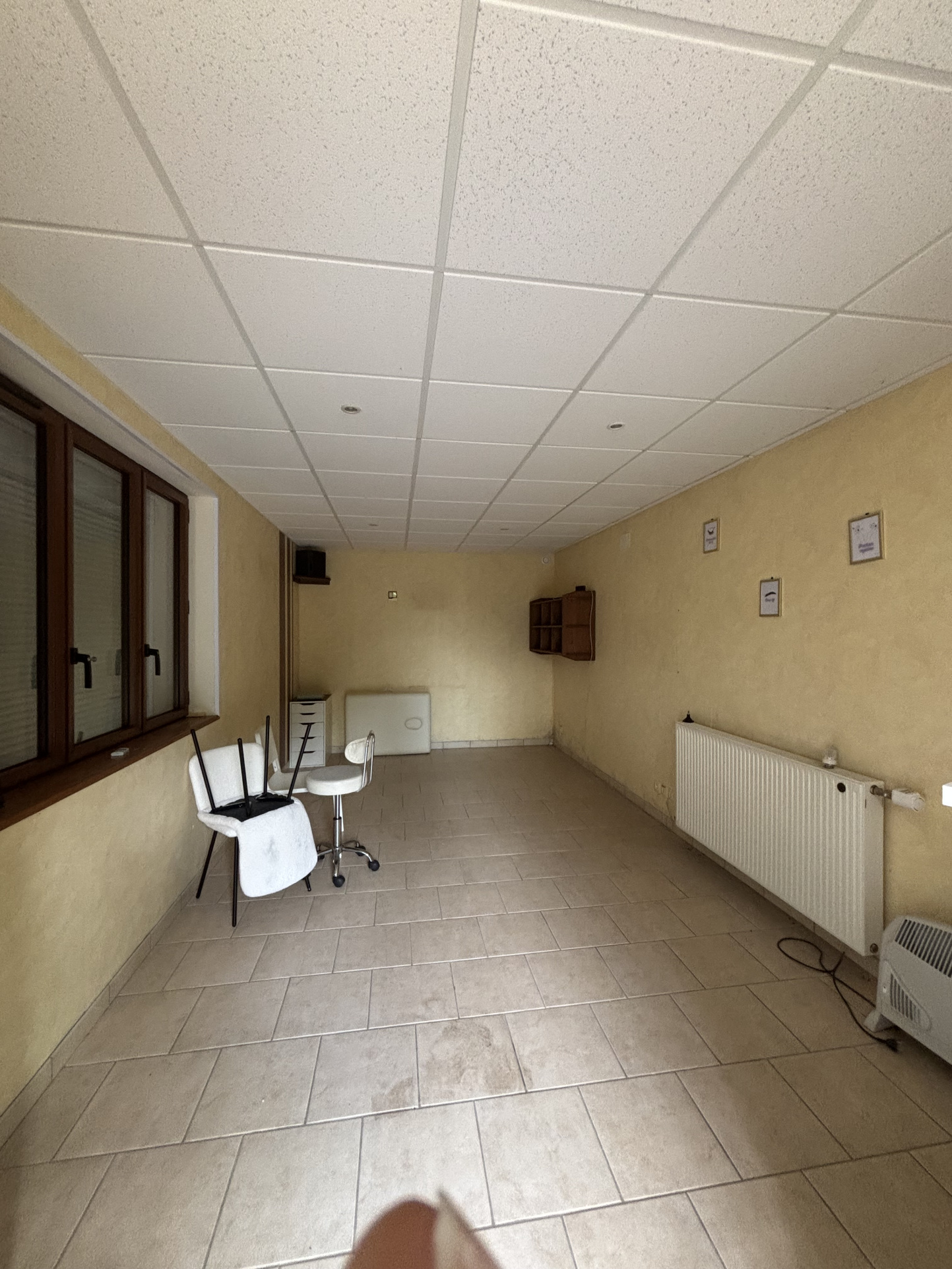 On y rentre par un sous-sol avec un grand garage de 80m² ,toilettes et portail ,un espace bureau de 24m² avec une entrée indépendante (fenêtres en alu et anti-effraction).
