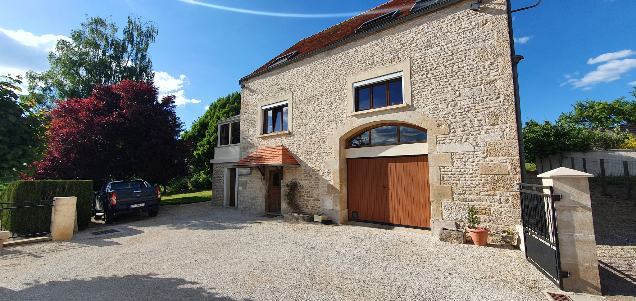 Cour devant et terrain sur l'arrière de la maison avec arbres fruitiers et sapins , une vue sur la plaine sans vis-à-vis, belle sensation de liberté.