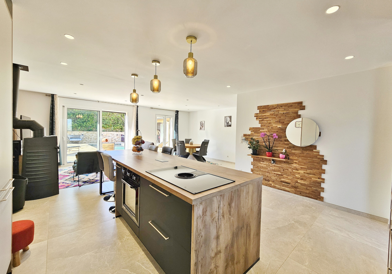 . séjour avec poele à bois