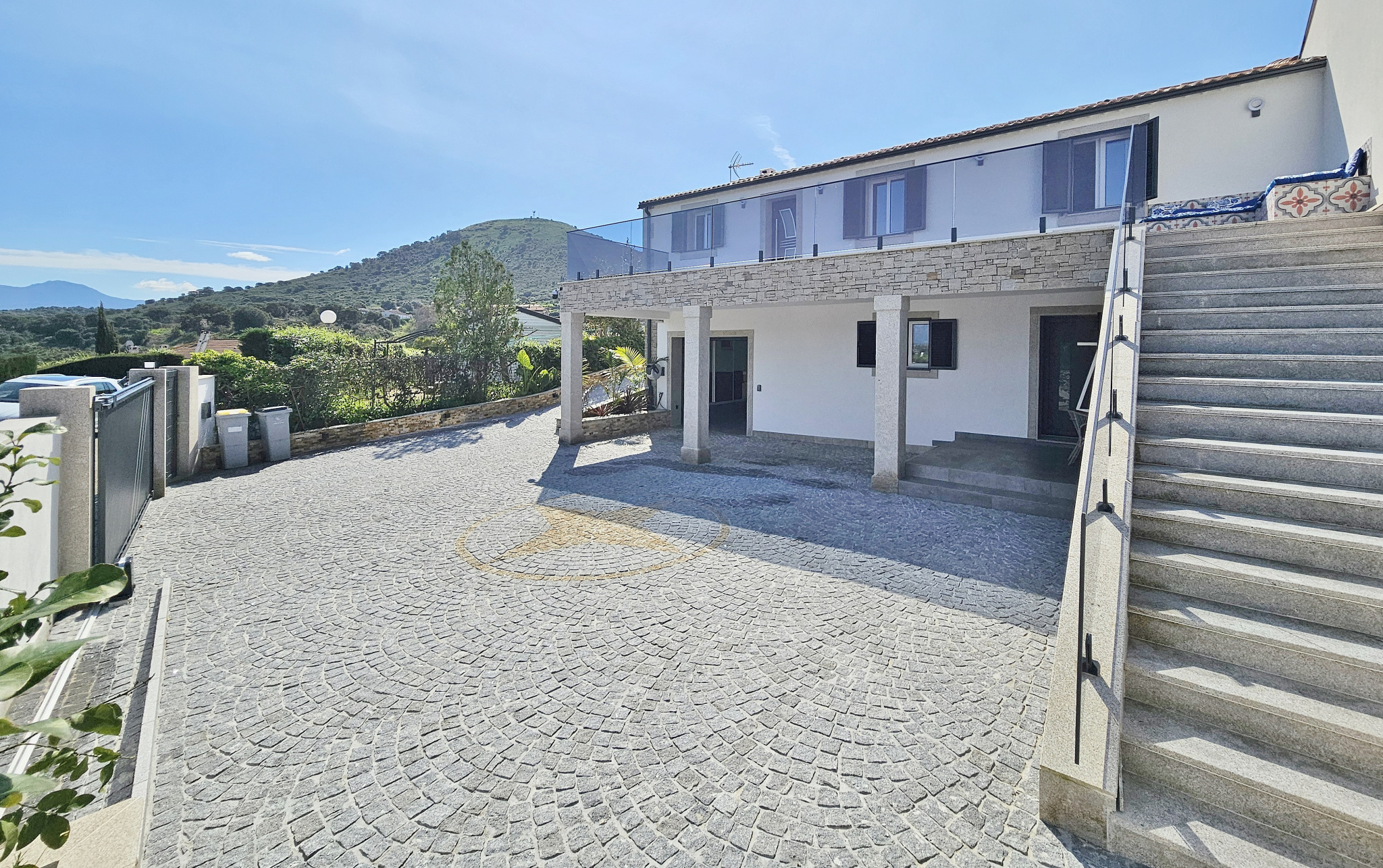 . terrasse d'entrée et escalier avec garde-corps en verre