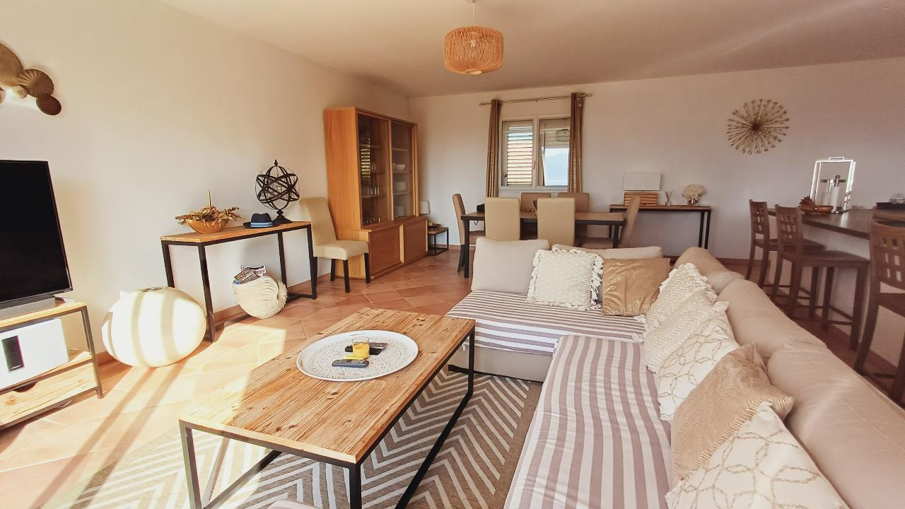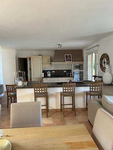 • Un séjour convivial avec cuisine ouverte, donnant sur une terrasse avec accès direct à la piscine.