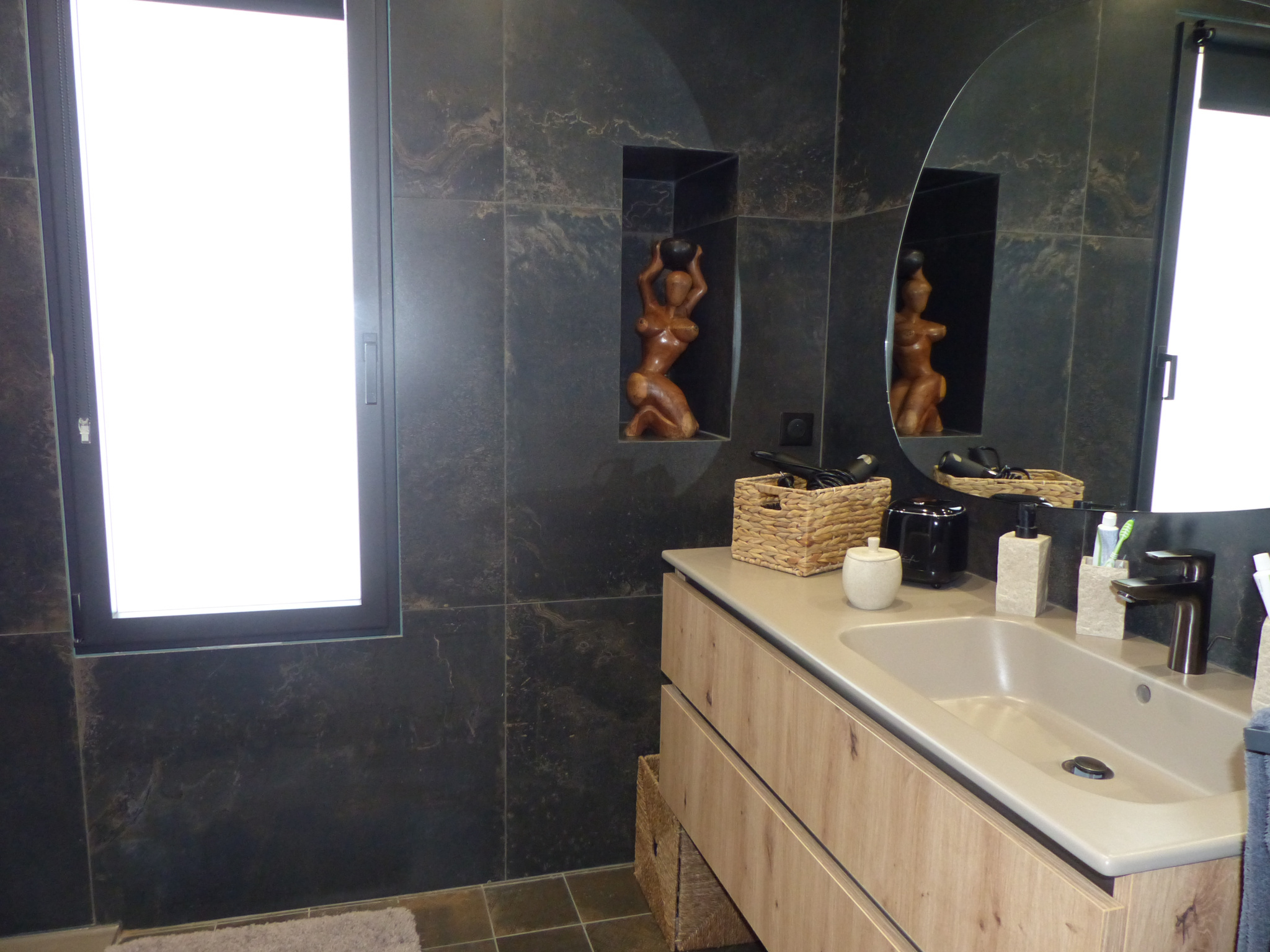 La villa se compose d'une magnifique pièce de vie avec cuisine us équipée donnant accès sur une vaste terrasse de 150m² environ, qui vous fera profiter d'une jolie piscine sans vis à vis à l'abri des regards, 1 wc visiteur et une suite parentale complète le premier niveau, en rez de jardin se trouve 2 chambres avec une vaste salle d'eau et wc, et un garage/buanderie, parking extérieur avec portail; motorisé.