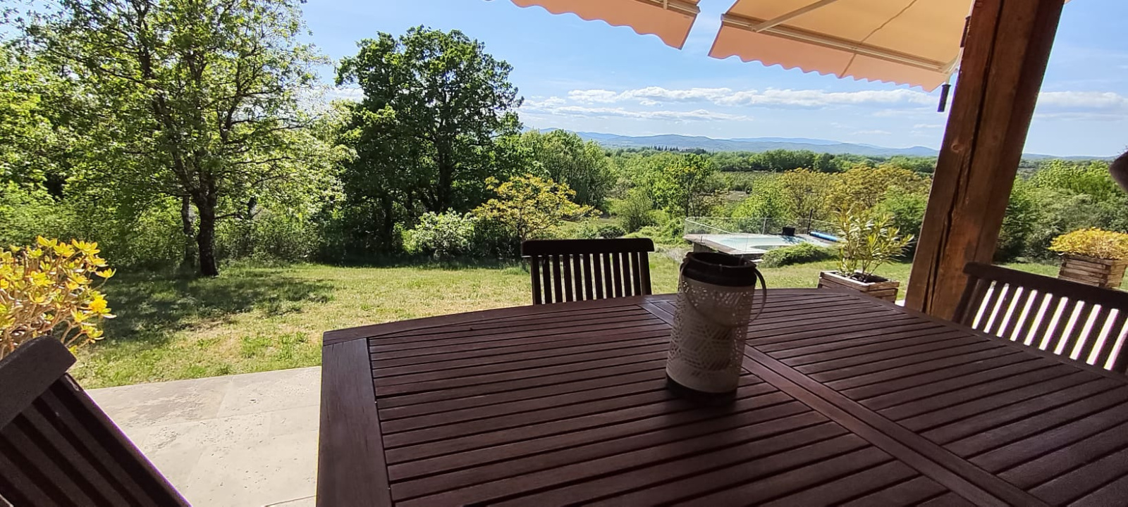 Dès votre arrivée, vous serez séduit par le cadre : une grande terrasse ombragée idéale pour les repas d’été, avec une vue dégagée sur les collines et la nature à perte de vue. Un véritable havre de paix.