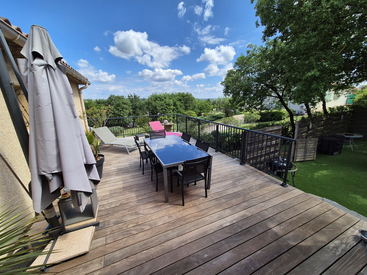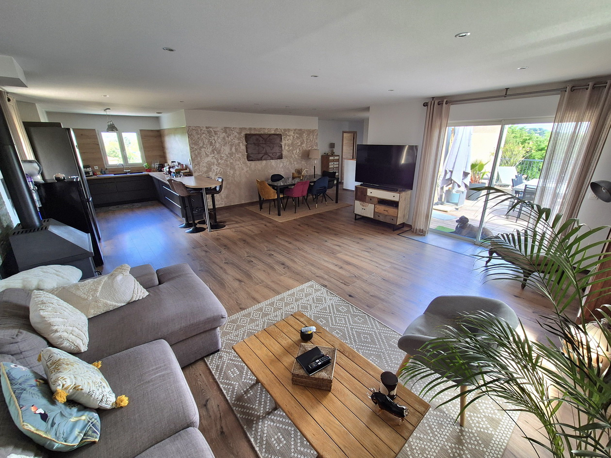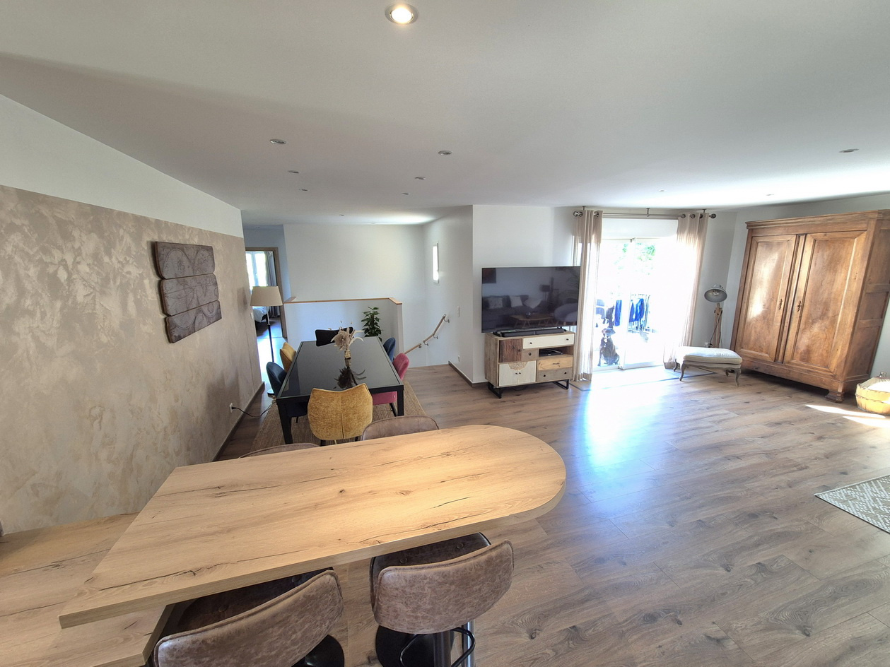 Découvrez cette belle maison rénovée en 2024 située à Alès, offrant de très belles prestations et un cadre de vie agréable. Au rez-de-chaussée, vous trouverez un bureau, un dégagement, un hall, une chambre avec dressing, une salle d'eau avec WC suspendu, une buanderie et un atelier. À l'étage, profitez d'une cuisine équipée ouverte sur un vaste salon-séjour lumineux avec poêle à bois, trois chambres supplémentaires, une salle d'eau et un WC suspendu. La maison bénéficie d'une climatisation réversible pour un confort optimal toute l'année, de double vitrage, d'une terrasse en bois idéale pour vos moments de détente, et d'un terrain de 858 m² avec possibilité d'abri voitures. Les travaux récents assurent une rénovation moderne et soignée. Ce bien est parfait pour une famille à la recherche d'espace et de tranquillité, tout en restant proche des commodités. Christophe Barthelot Tuc immobilier Alès 06.12.50.71.31 Référence 3108 Prix : 359 000 € (Honoraires charge vendeur)