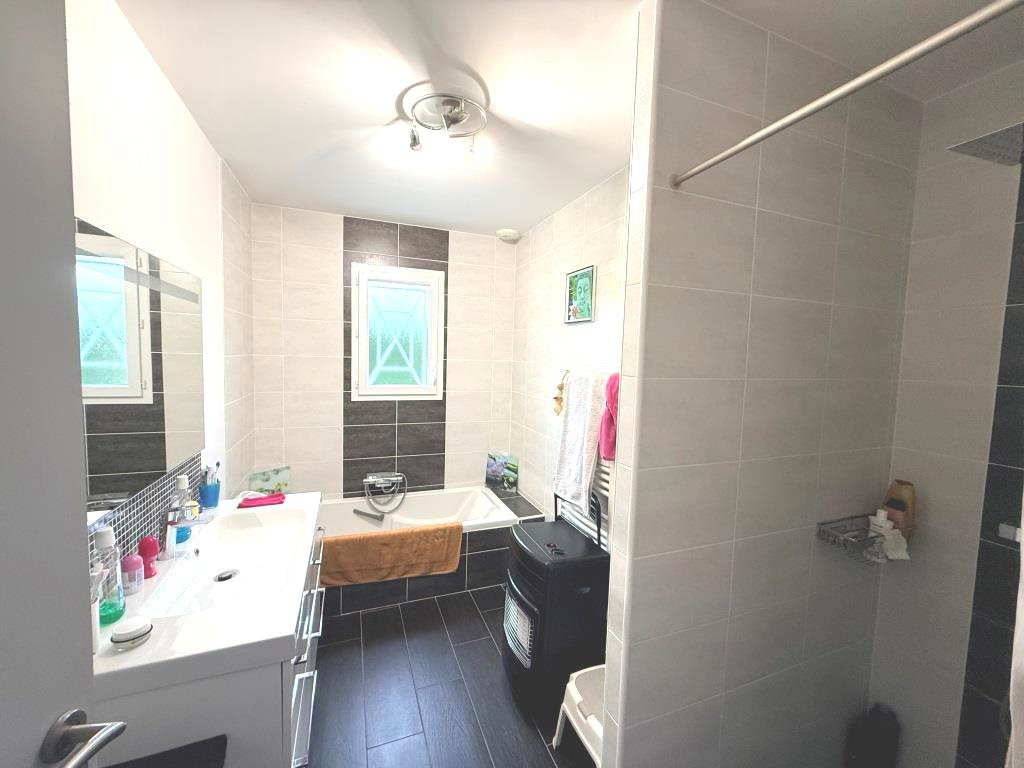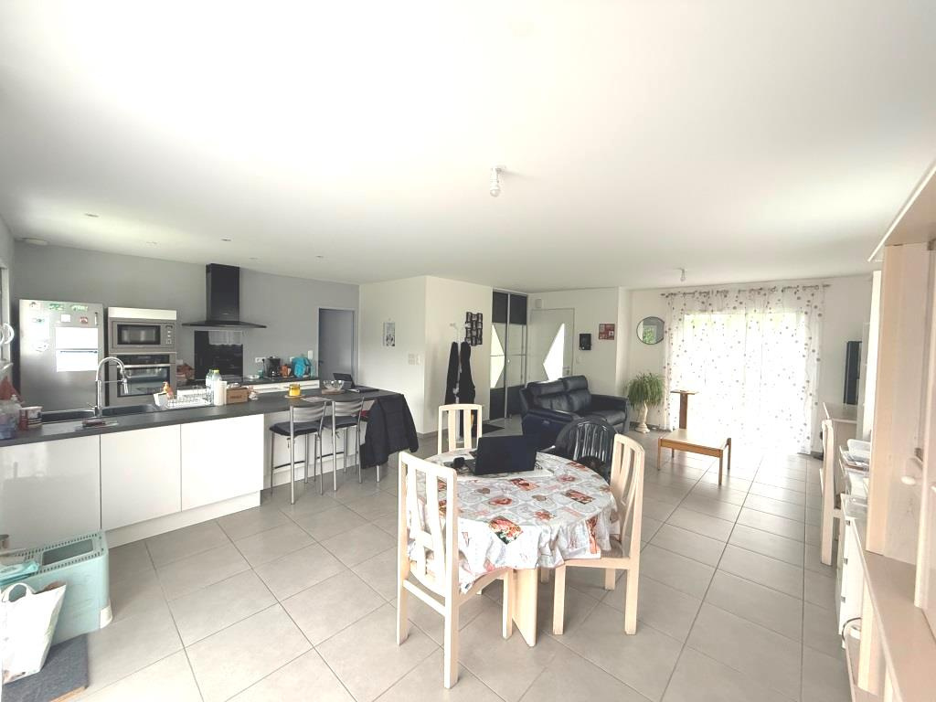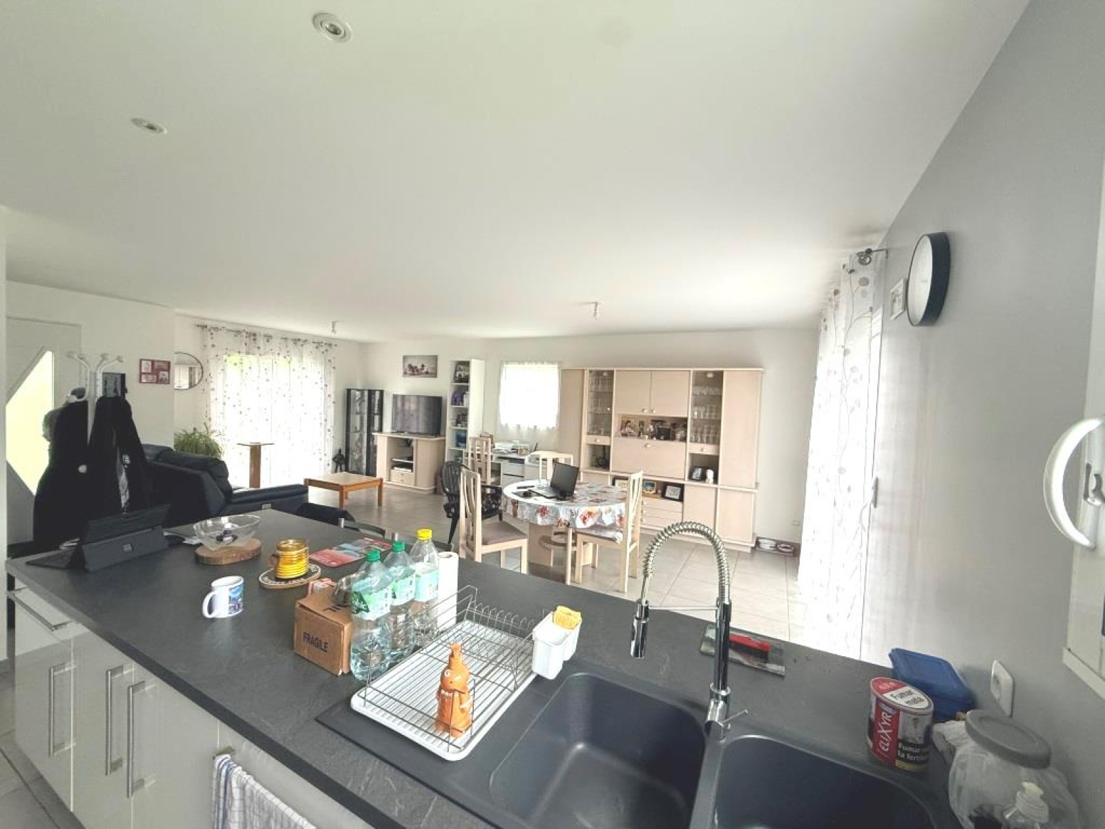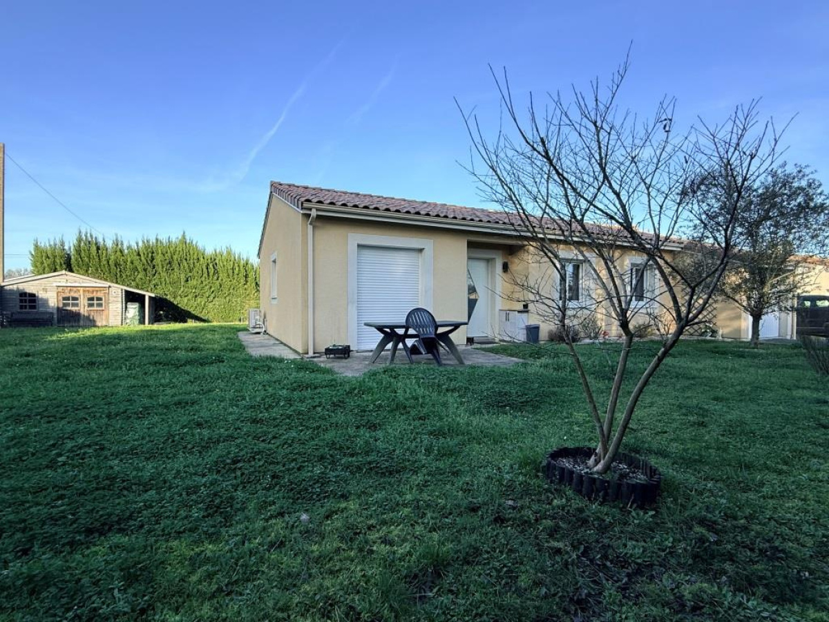 Une maison de plain pied de 2015, comprenant une entrée avec placard donnant sur un salon/séjour avec cuisine ouverte aménagée et équipée, un dégagement desservant un cellier, trois chambres avec placards, une salle de bains avec douche et un wc. Un garage attenant et une cabane de jardin. Le tout sur un terrain d'une superficie d'environ 850 m². Gare SNCF et accès N10 pour Bordeaux à 5 minutes, école maternelle, primaire et collège à 2 minutes.Chauffage au sol (pompe à chaleur air/eau).