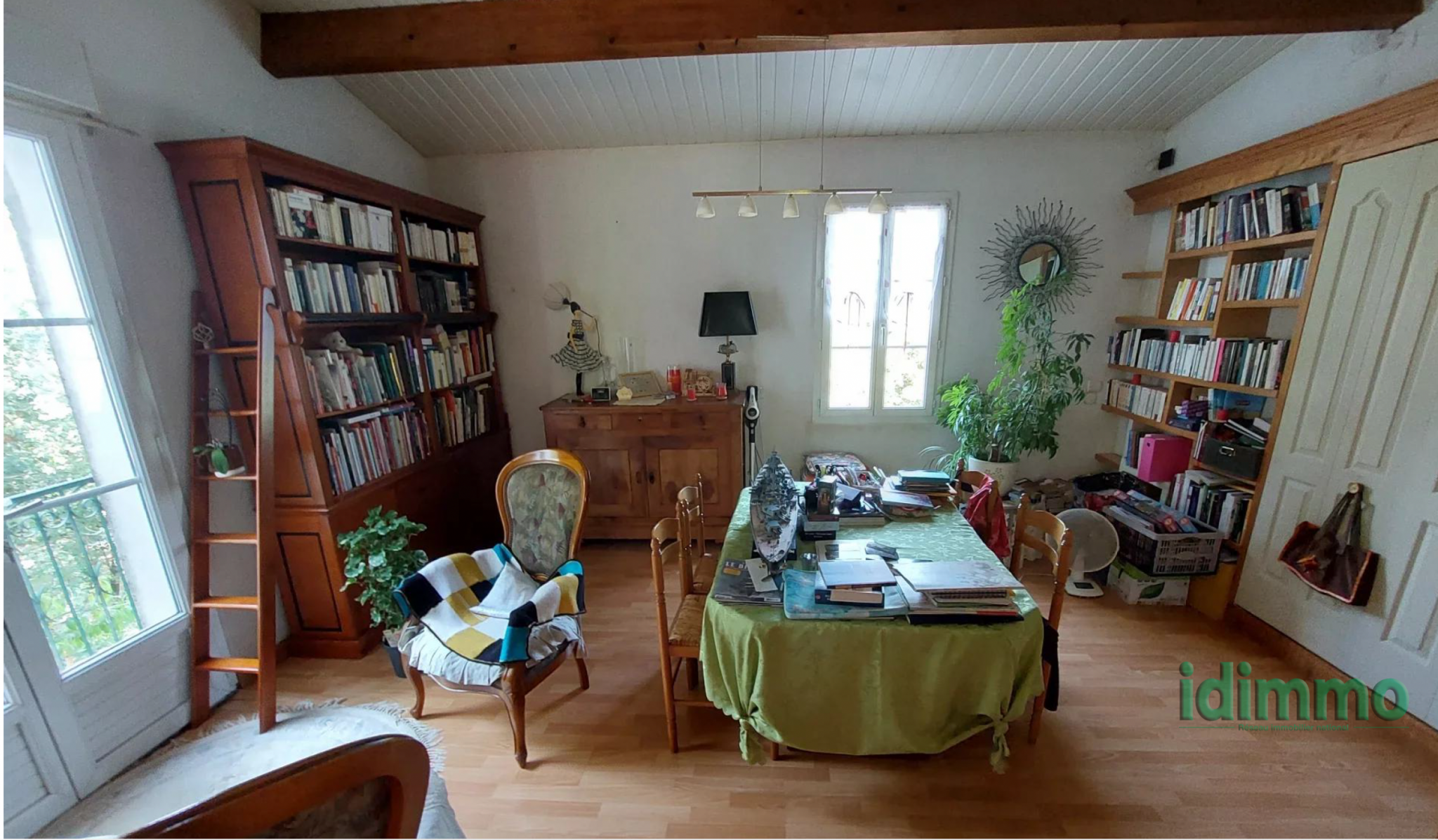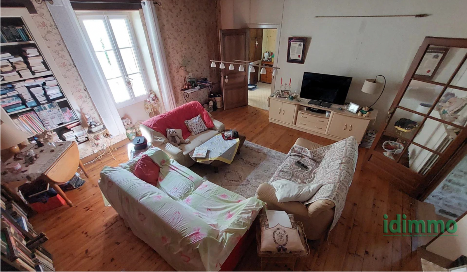 Maison principale de 140 m2 à rafraichir avec cuisine aménagée et coin repas, double séjour de 30 m2 avec cheminée, chambre, salle de bain, wc, buanderie , à l'étage, palier et 2 grandes chambres.