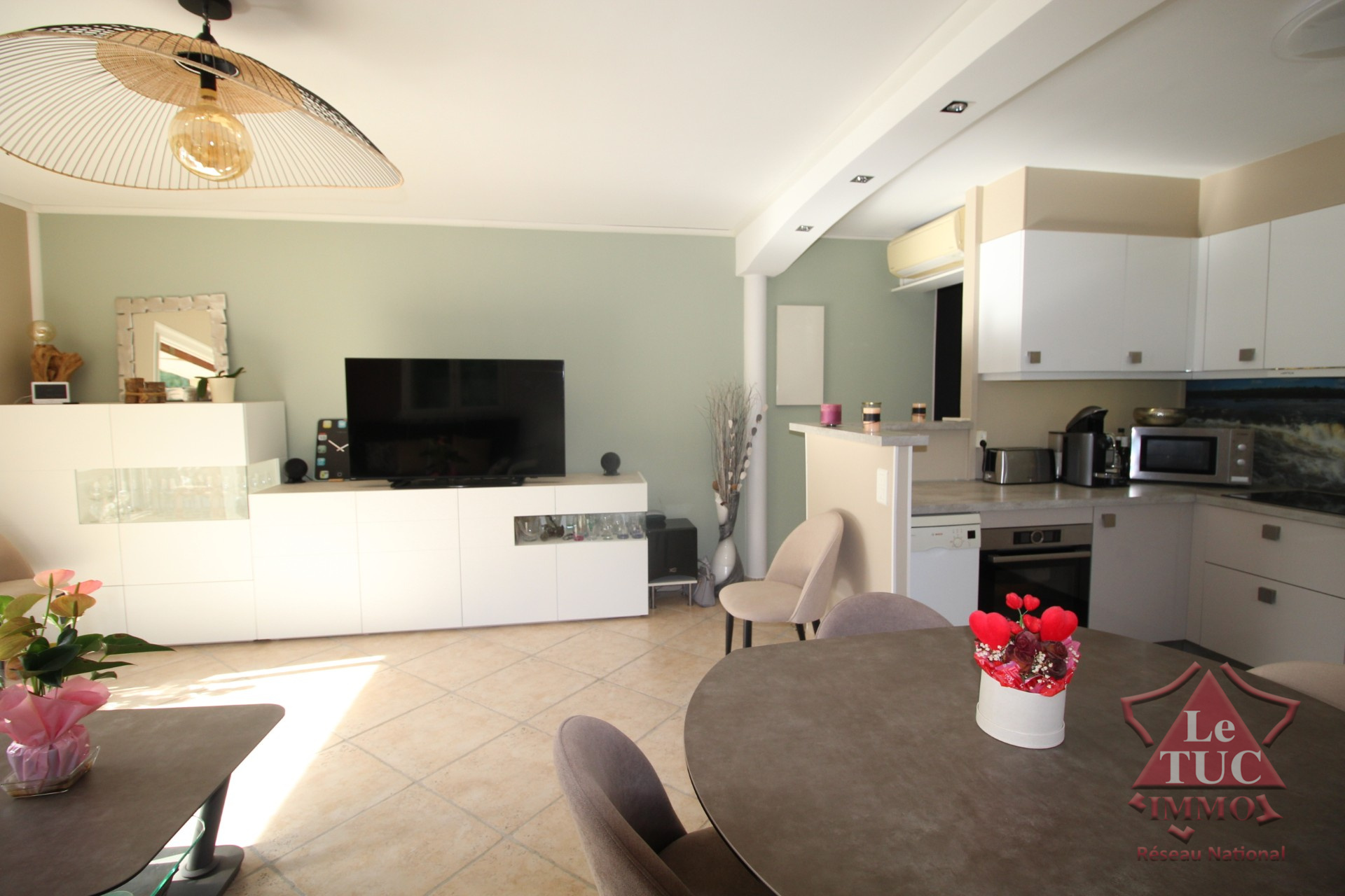 Dans une petite résidence de 18 lots très proche du centre ville de Cavalaire, très beau duplex, refait à neuf d'une superficie de 94 m2 (dont 86 m2 loi Carrez). Composé au rez de chaussée, d'une suite (pouvant être exploitée pour une profession libérale, médicale ou para médicale) ou en studio indépendant. A l'étage, un grand séjour, ouvrant sur une terrasse ensoleillée, exposée sud ouest, avec cuisine américaine aménagée et équipée, deux chambres (dont une actuellement aménagée en bureau) salle d'eau et wc.Ce bien est entierement climatisé, et dispose de deux emplacement de parking privatif.