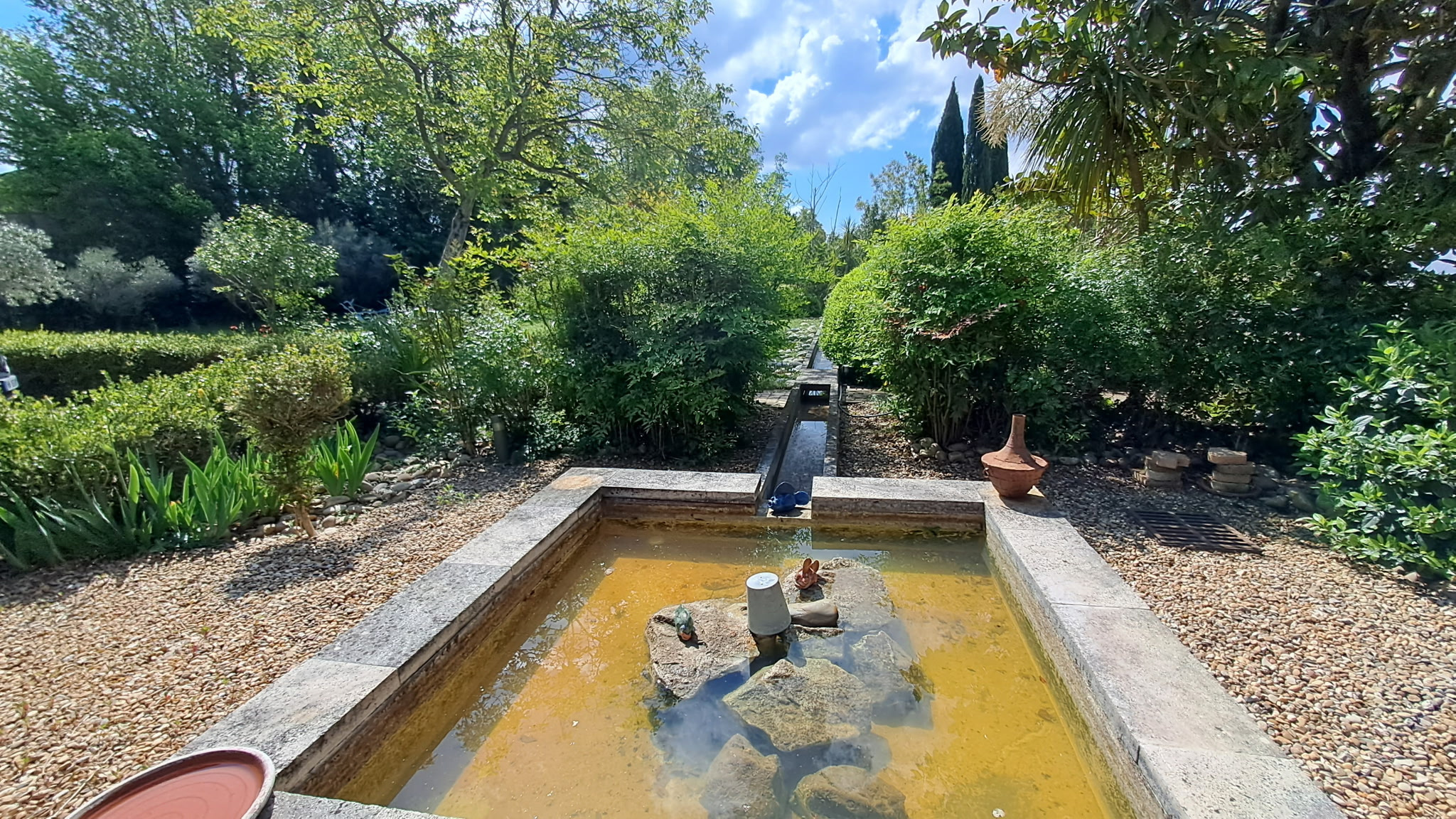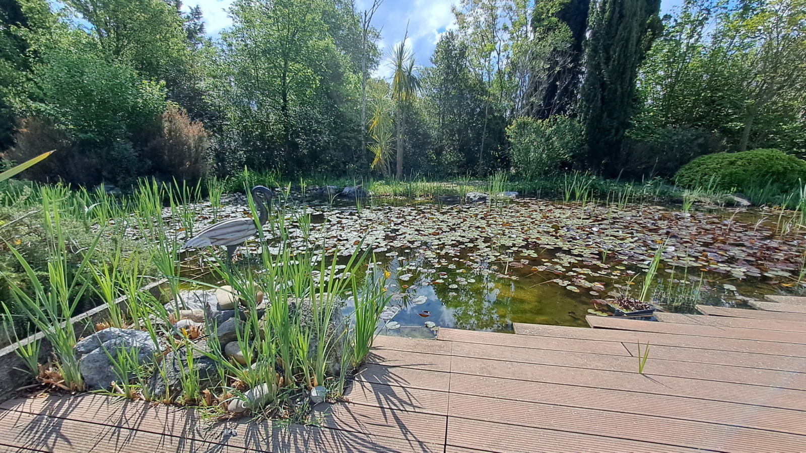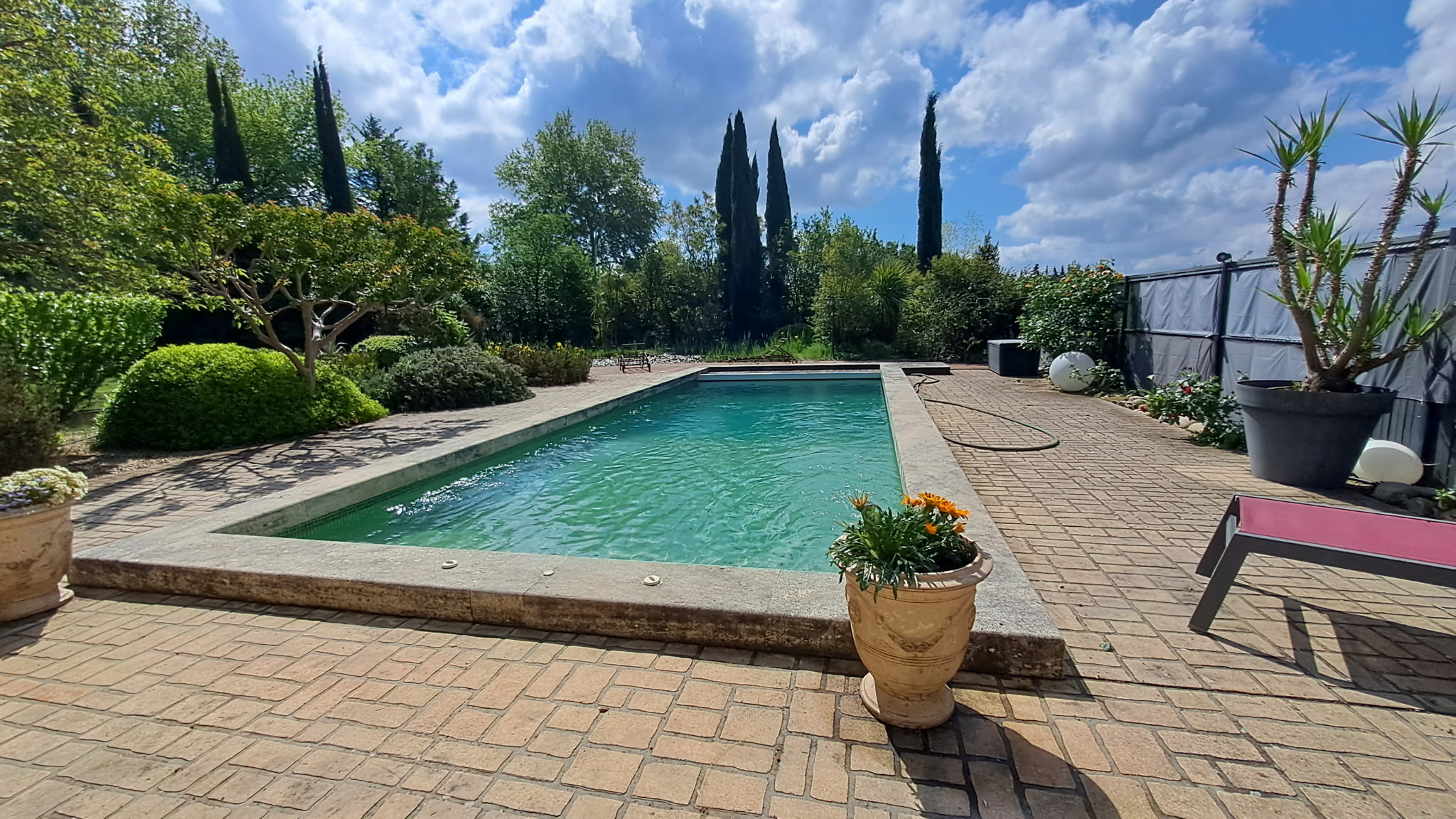 A l'extérieur vous pourrez profiter d'une belle piscine avec pool-housse, d'un grand jardin paysagé avec un petit étang artificiel et d'un garage fermé.