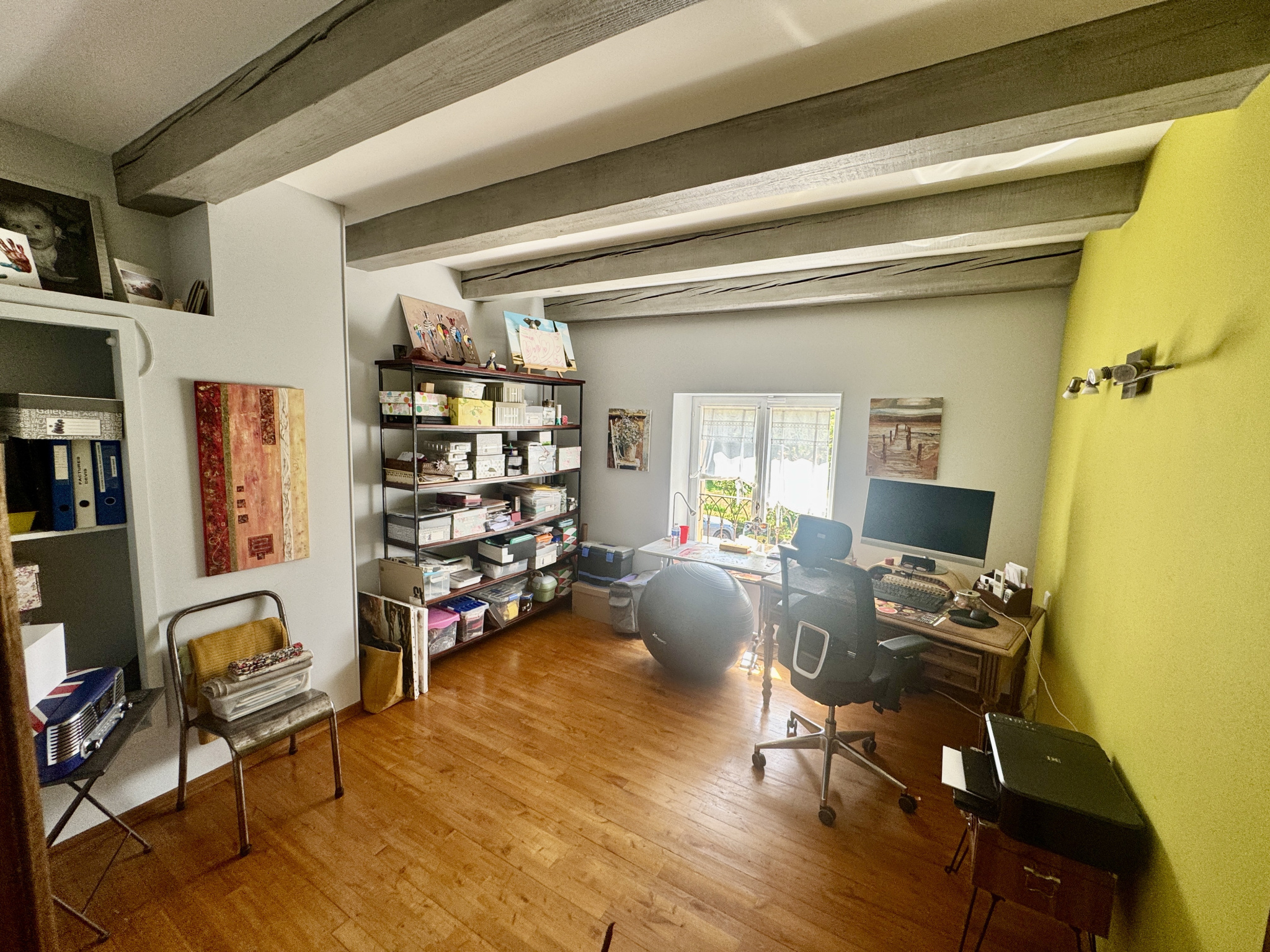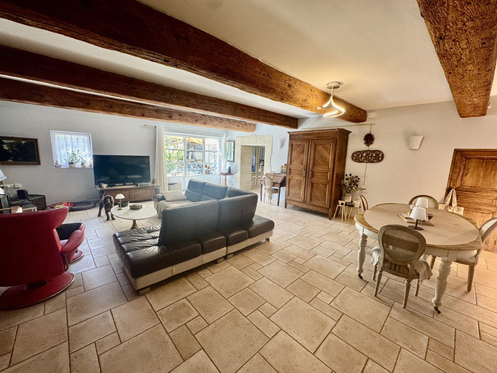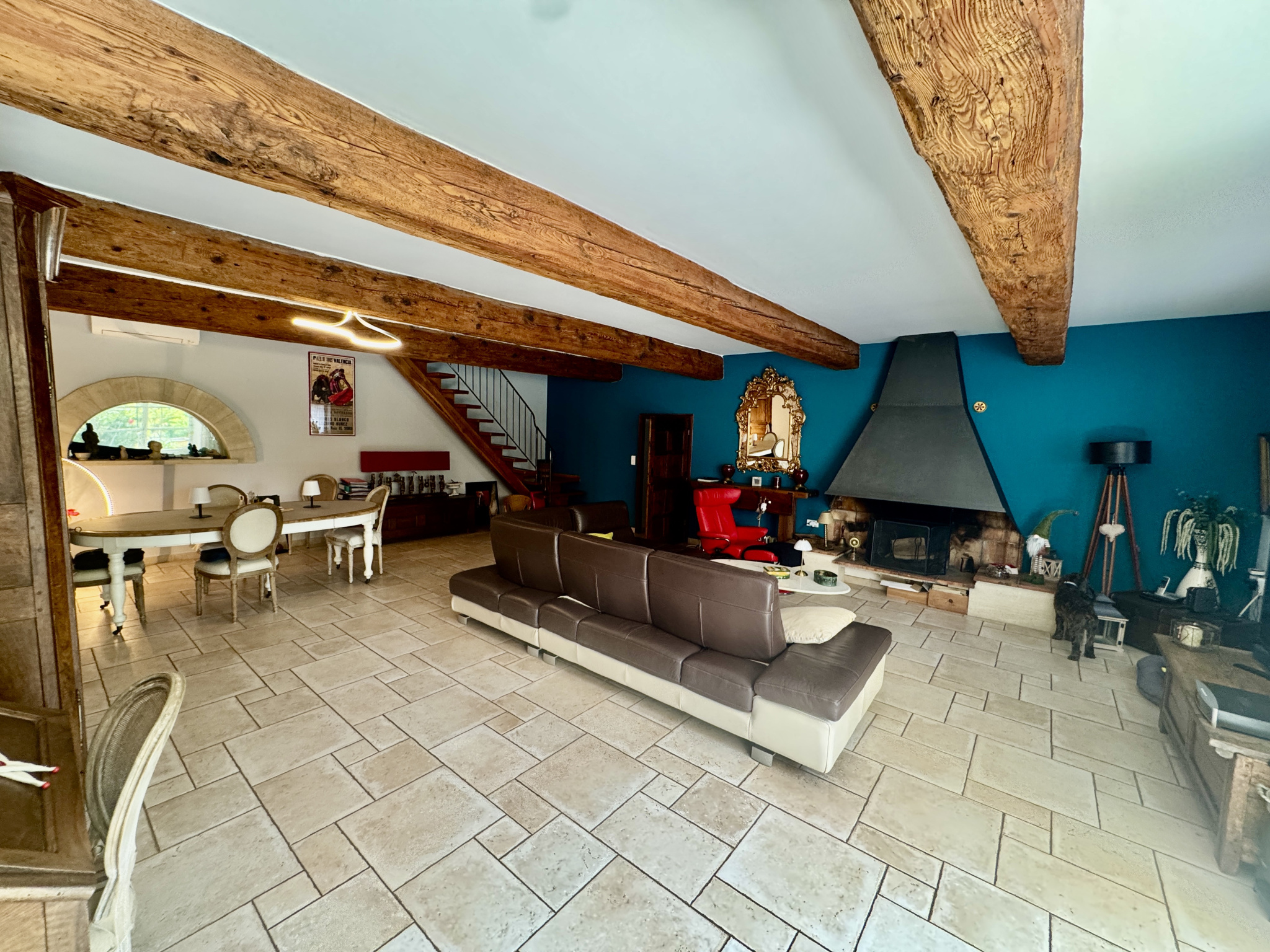 Cette propriété est composée au rez-de-chaussée d'une grande pièce à vivre avec cheminée, ouvrant sur la terrasse ( sud ), une cuisine indépendante aménagée et équipée, une arrière cuisine, et d'une grande suite parentale avec salle d'eau et wc et d'un bureau privatif.