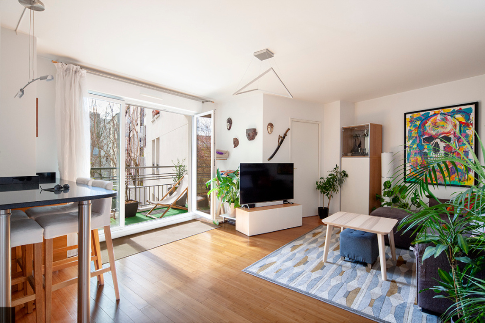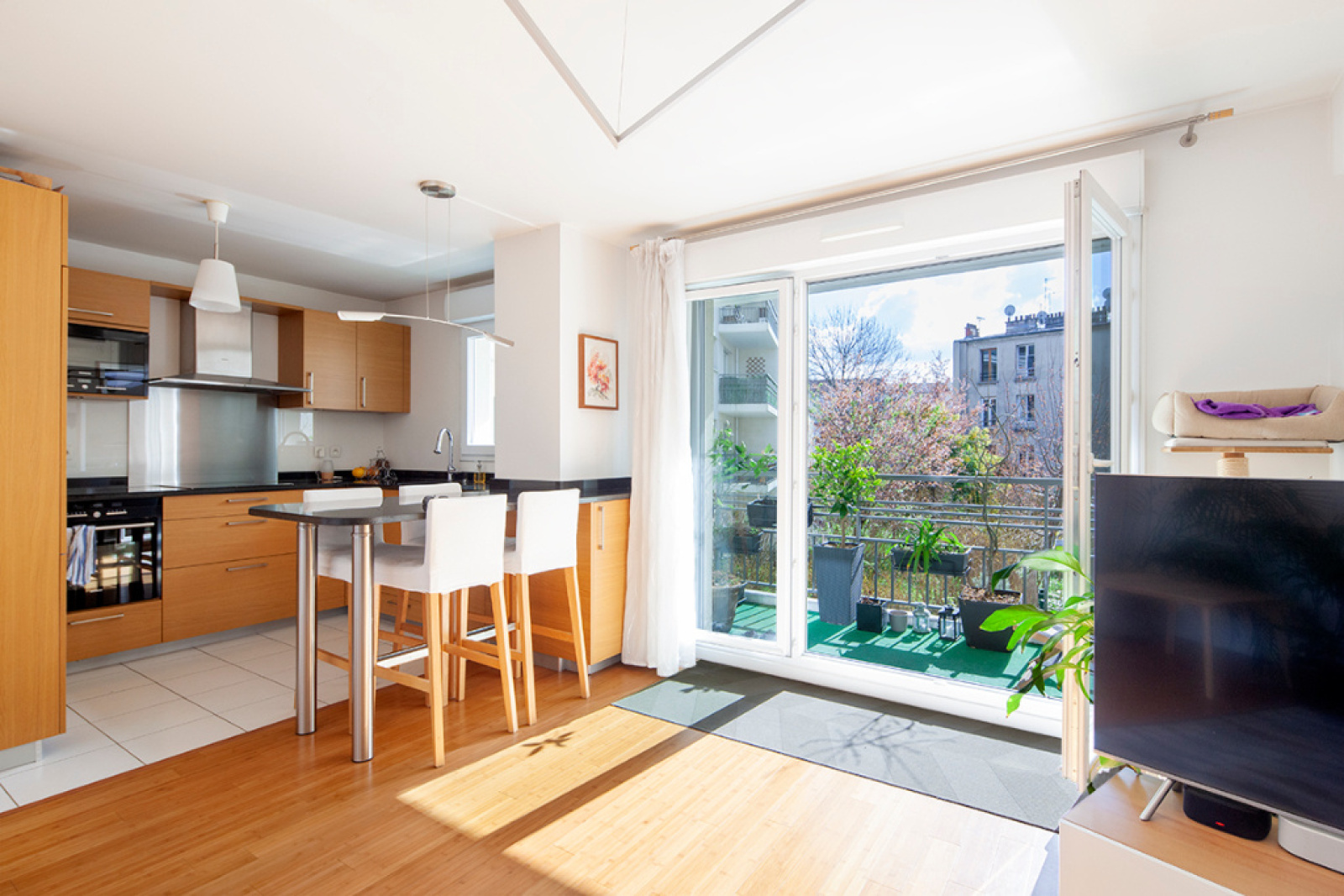 Saint Denis centre ville. Situé à mi-chemin entre la ligne 13 Porte de Paris et la gare RER D et ligne H, à deux pas des berges du canal dans une copropriété de 2009 , superbe appartement très bien agencé de 4 pièces principales exposé plein sud, comprenant un séjour avec cuisine ouverte restant totalement équipée et aménagée, 3 chambres, une salle d'eau, buanderie , wc séparé et une salle de bains. Toutes les ouvertures donnent accès à un large balcon filant de près de 13m2 avec vue sur les jardins intérieurs de la copro, le calme absolu. Double emplacement de parking au sous-sol, un local vélos et poussettes dans le vestibule de l'immeuble, digicode, interphone, visiophone. Tous les transports, commerces et écoles à proximité. Honoraires charge vendeur Pour organiser une visite ou plus d'infos me contacter : Sophie Durand agent commercial mandataire en immobilier immatriculé au registre spécial des agents commerciaux (rsac) du tribunal de commerce de Bobigny sous le numéro 511047870